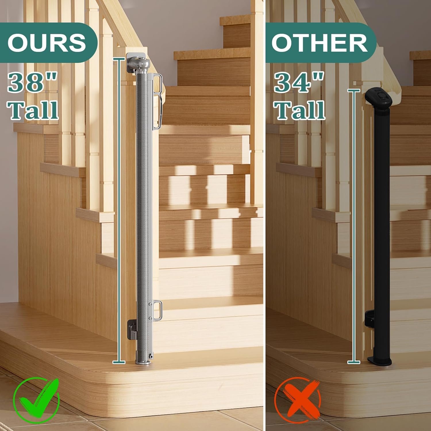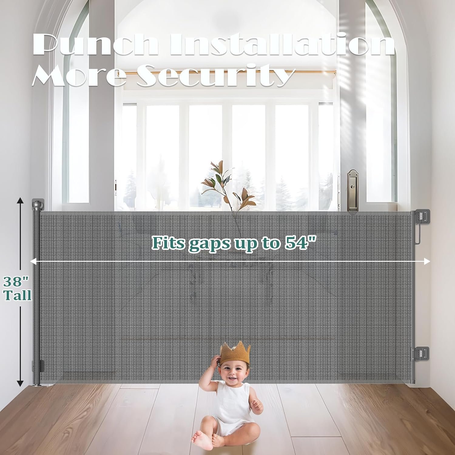 Retractable Baby Gates No Drilling | 54″ Wide x 38″ Tall Dog Gates for Stairs | Indoor/Outdoor Use | Child Gates for Doorways, Deck, Porch, Hallways, Patio – Gray