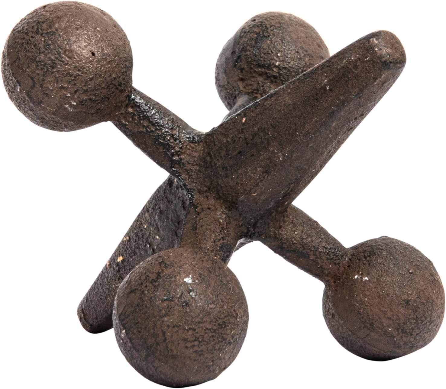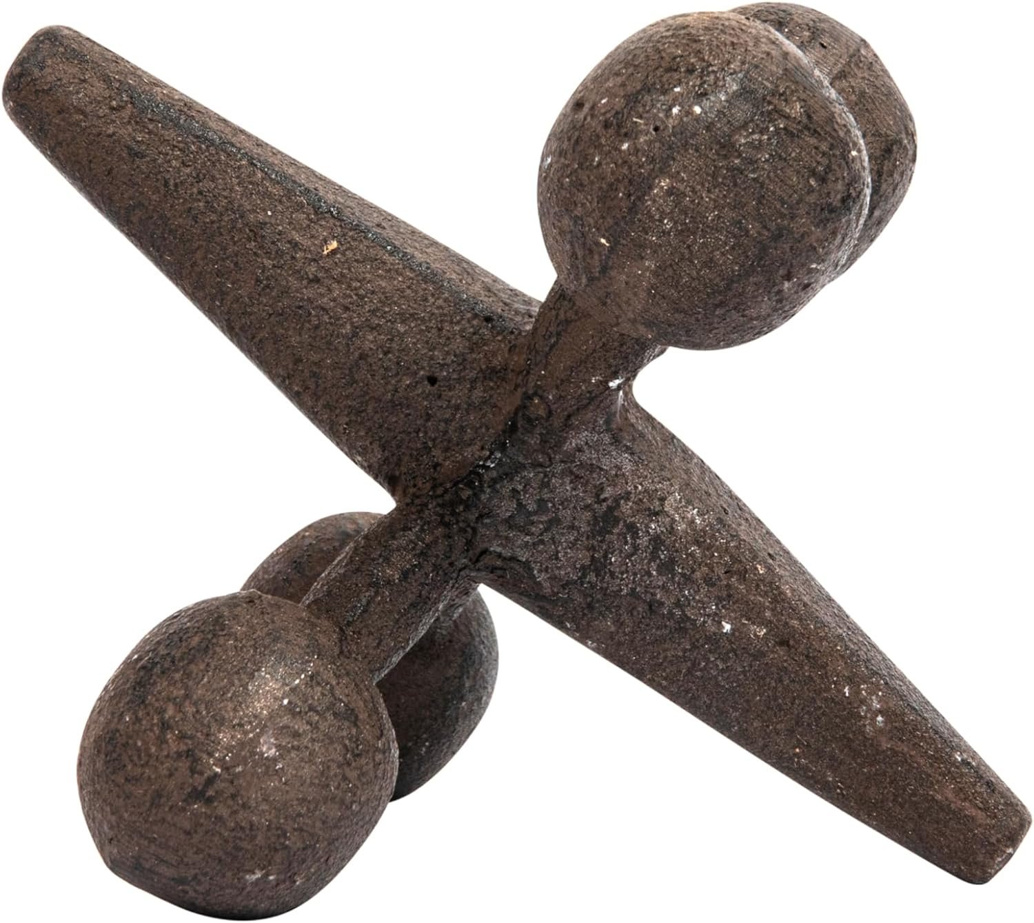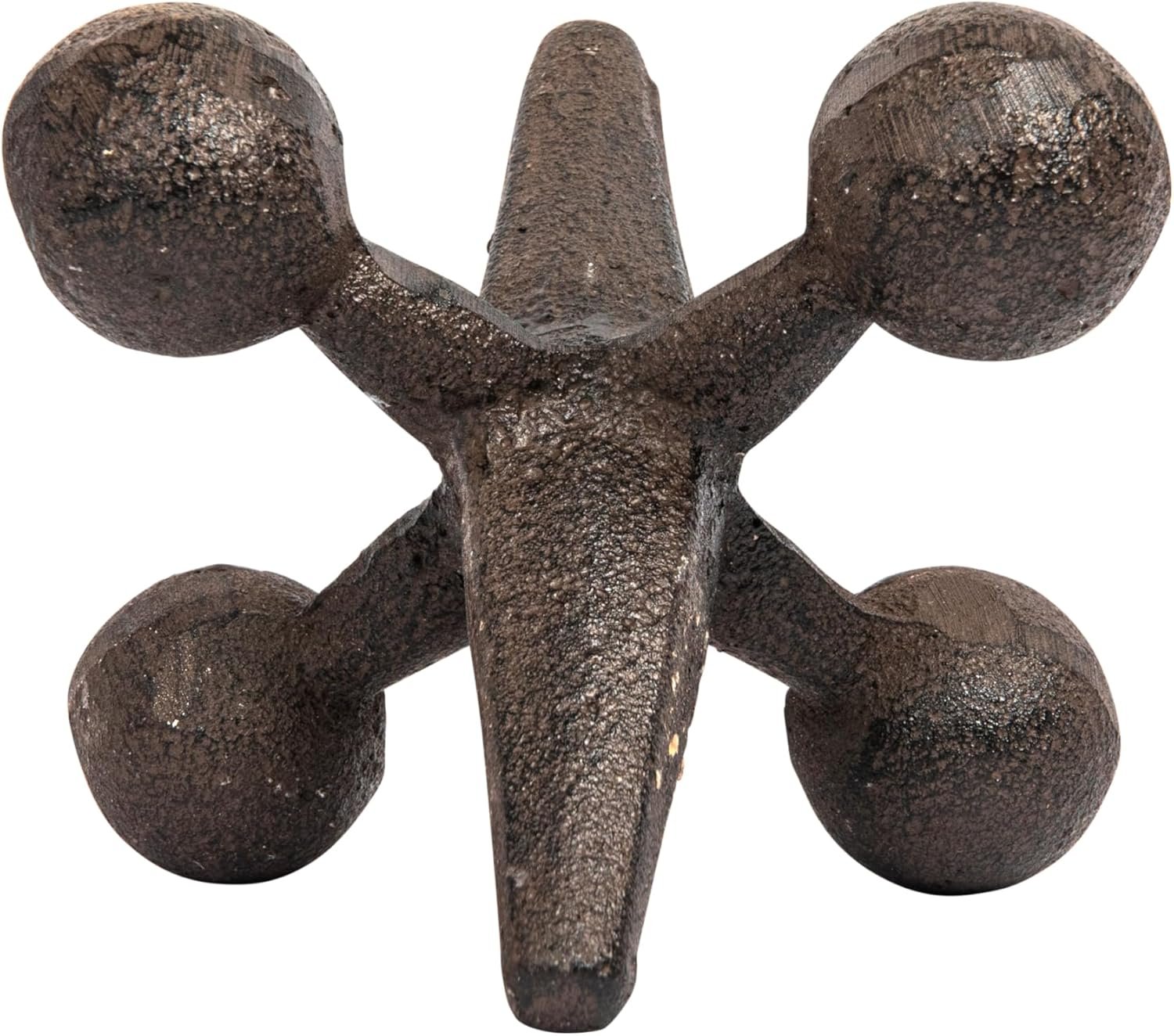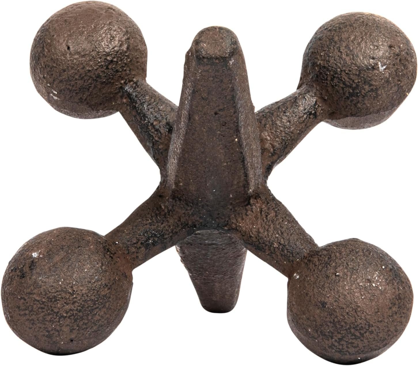 Wonderful large cast iron jack with an antiqued rust colored finish. Very interesting decorative piece for your home, will fit with a variety of styles. It would also make a very unique gift idea. It is the perfect vintage-inspired addition to your doorstep. This jack’s artistic silhouette and design were influenced by the Victorians, who were the first to use sculptural elements as doorstops.
