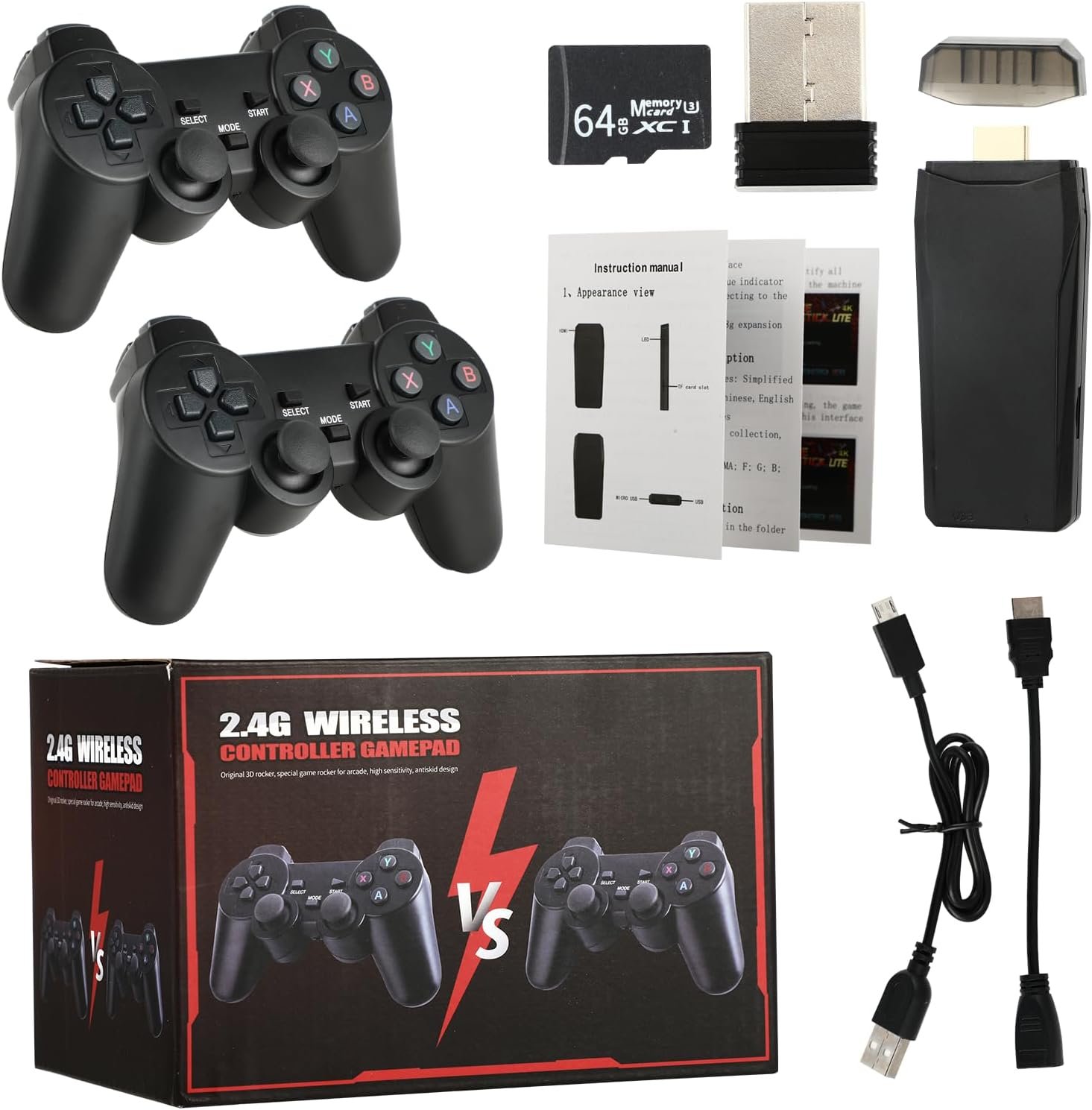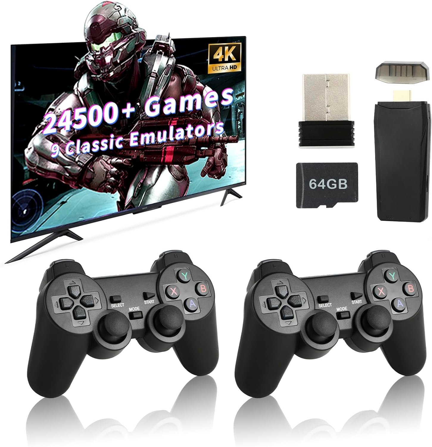 Retro Game Console, 24500+ Games Built-in, Wireless Retro Game Console, 9 Emulators, 4K HDMI Output, Dual 2.4GHz Wireless Game, Plug and Play Video TV Games, Black(64G)