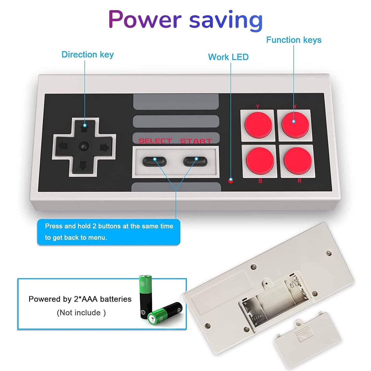 Wireless Controllers: This classic mini game console comes with dual wireless remote controllers.No cable constraint,it is convenient for you to do all kinds of game operations during the game.