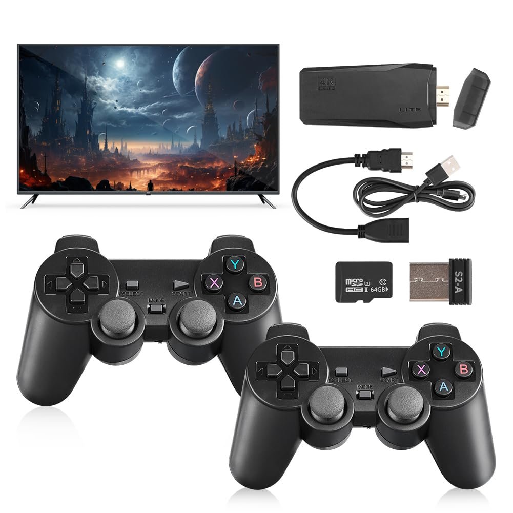 Wireless Retro Play Game Console, Nostalgia StickGame, Retro Game Console, Plug and Play Video Game Controller Built in 20000+ Games,4K HDMI Output,9 Classic Emulators,with Dual 2.4G Wireless Controllers(64G).