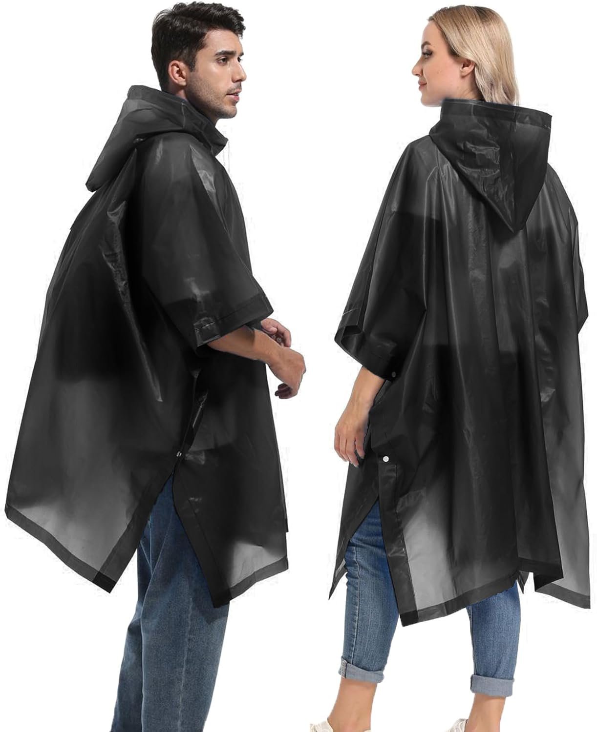 Reusable Rain Ponchos with Drawstring Hood for Adults, Waterproof Thicken Rain Coat, 2 Packs