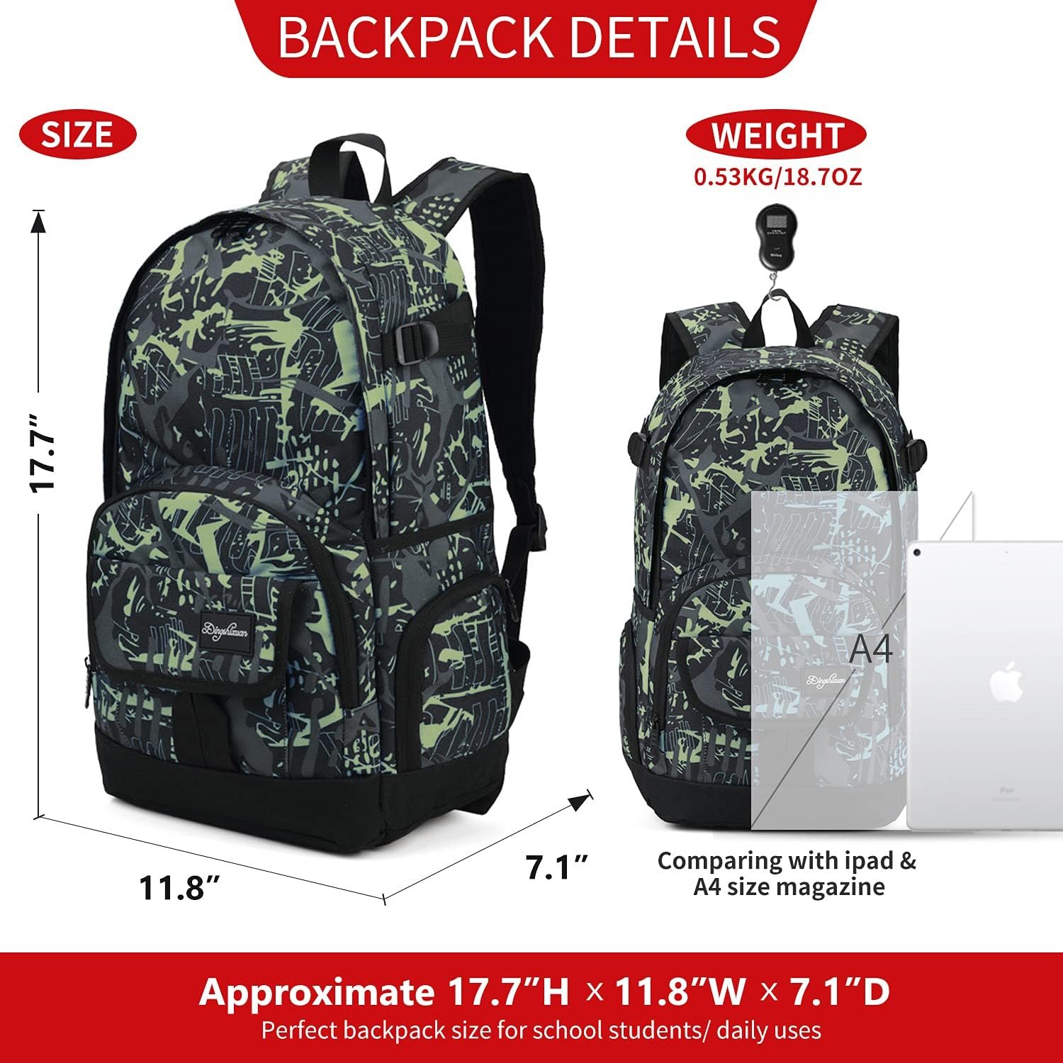 Flexible and ample storage space with scientific and reasonable layout design in Ricky-H’s conveniently portable bag makes getting out the door in the morning much easier. Multipockets layout allows small items (eg. Phone, pens, keys, chargers, power bank, sunglasses, ect.) and big items (eg. Laptop, A4 binders, textbooks, notebook, lunch box, sweater, towel, ect.) being organized neatly. -Suitable Occasion: School, Travel, Camping, Hiking, Gym, Office, Gift, Versatile. Whether to cater your day-to-day organizing basis or your “extra-curricular” uses, our backpack is versatile enough for many use, to be a book bag during the week and a travel backpack on weekends. Great choice as school bookbag or daypack, overnight backpack. Or even as diaper bag. -Applicable People: Men, Women; College/University Campus Students, High school, Middle school, Elementary, Primary school boys & girls; Parents, ect.)-Comfort with featuring ergonomic designed adjustable padded reinforced shoulder straps, makes the backpack all day use as a breeze. -High-quality, strong, long lasting nylon fabric builds our sturdy and solid backpack with great performance on water-resistance, anti- striking and anti-scratching. -Twin metal zippers with fabric flaps over to keep water out of the backpack and last much longer than plastic ones. Easy at opening and closing the backpack.Double stitching at stress points adds valuable security to seams, handles, and straps, enhancing the durability. And additional top handle provides extra help while lifting or moving the backpack. *Notes:1. Differences of 0.5-1 inch may occur due to manual measurement. 2.Item color displayed in photos may vary slightly from the actual product due to monitor color settings.