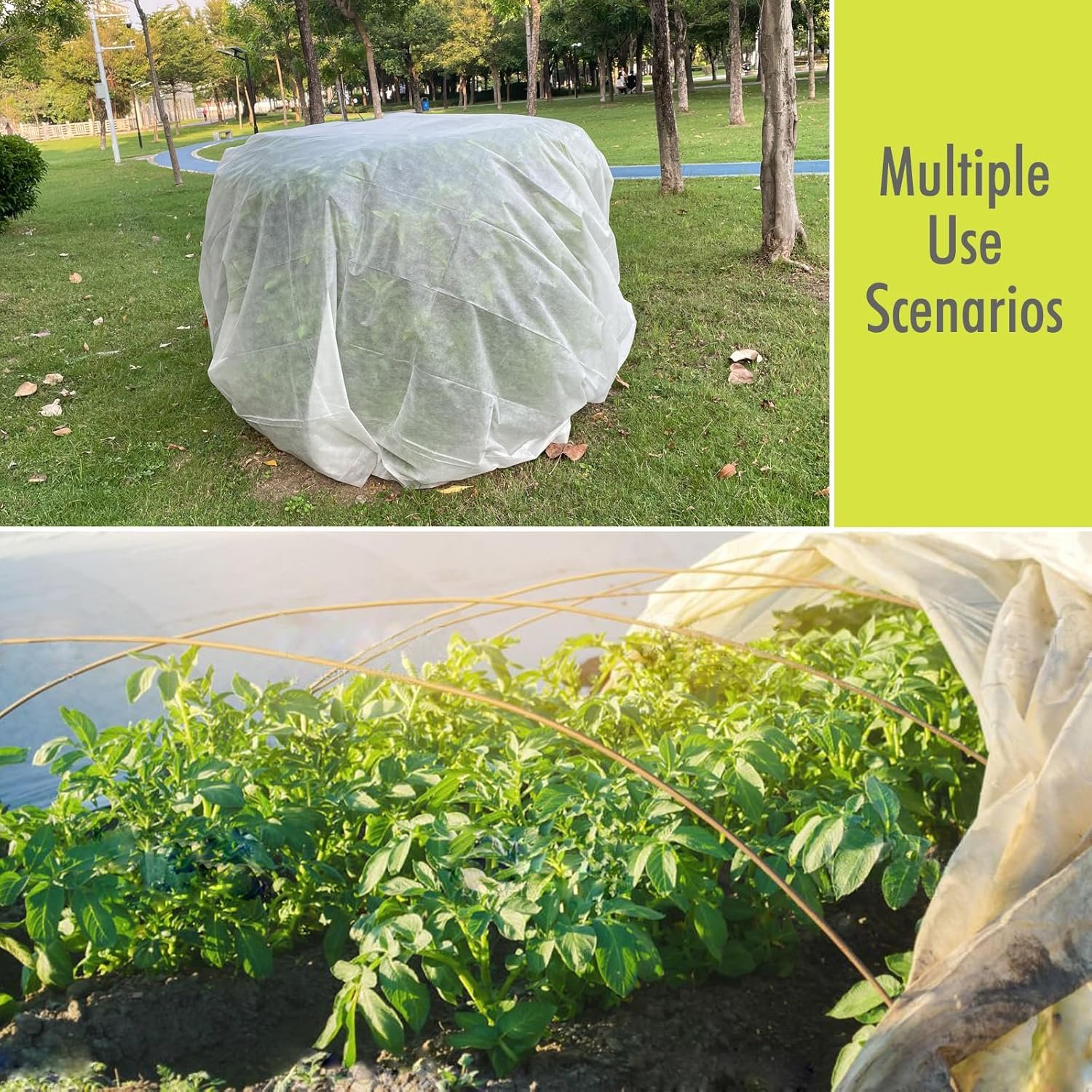 Full Protection Plant Cover: 10×33 FT plant covers freeze protection for outdoor plants not only could offer a strong protection from winter freeze, frost, snowstorm, heavy rain, strong sun lights and other harsh weather, but also could prevent your plants from attacking by birds, pests and insects. Frost cloth plant freeze protection is ideal for extending the growing season into early spring and late and delay the harvest season