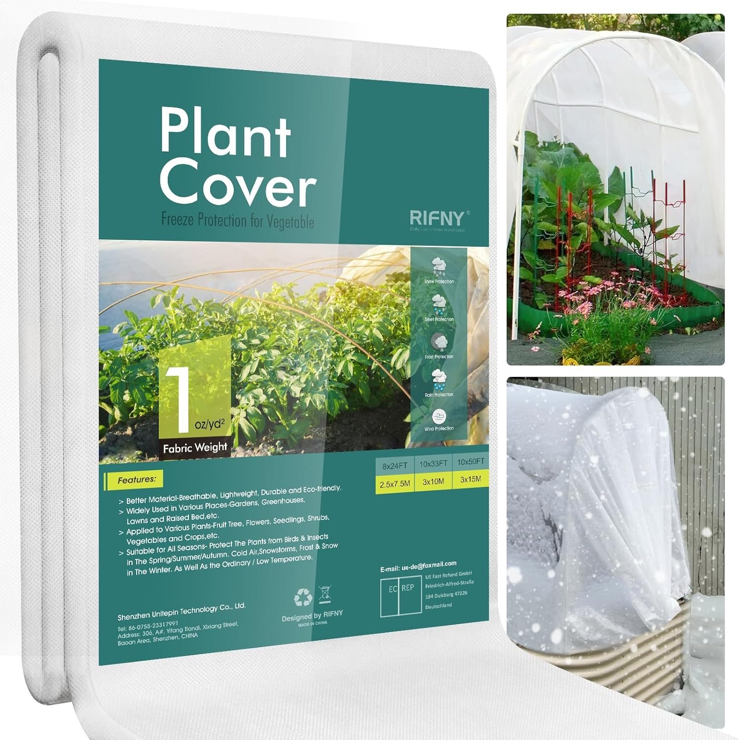 RIFNY Plant Covers Freeze Protection, 1 oz/yd² 10Ft x 33Ft Frost Cloth Plant Freeze Protection for Winter Frost Snowstorm, Frost Blankets for Outdoor Plants Protect from Birds, Pests