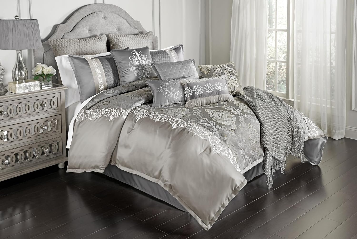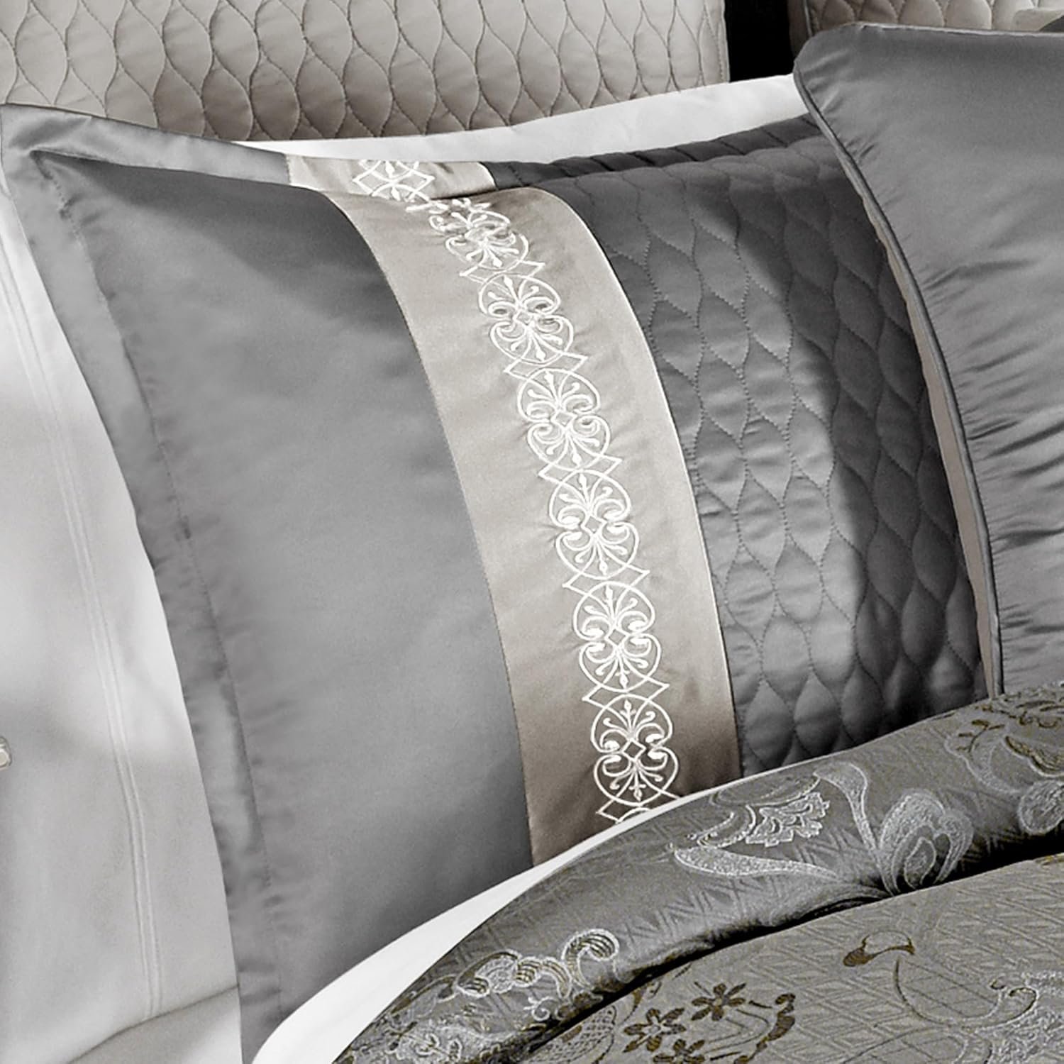Riverbrook Home Elegant Collection Comforter Set, King, Kacee – Platinum, 12-Piece Set