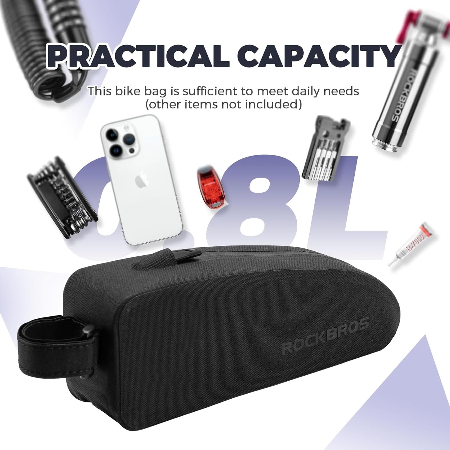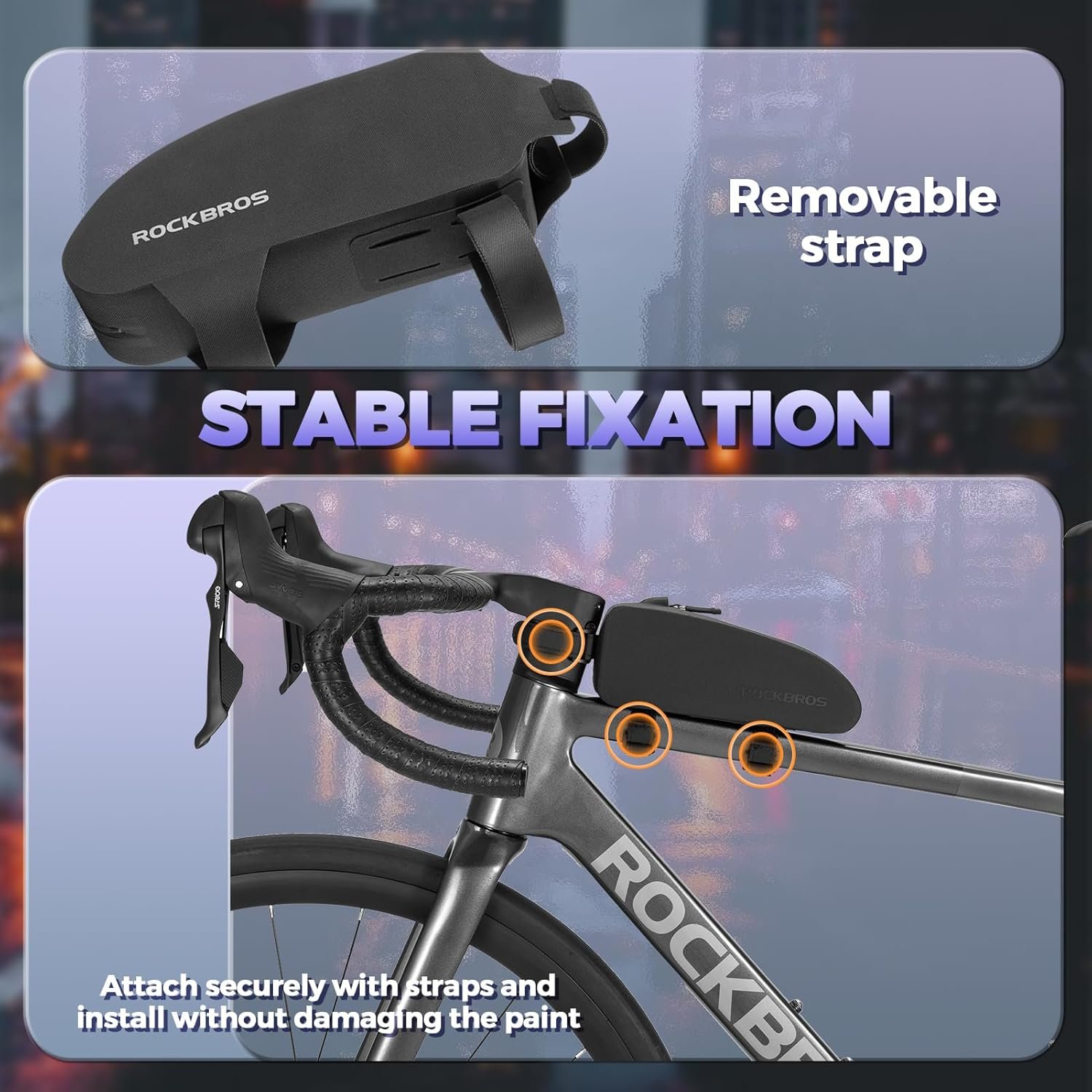 EASY TO INSTALL: Adjustable hook and loop design, suit for more size MTB road bikes. Install and release the top tube bag quickly and without any tools