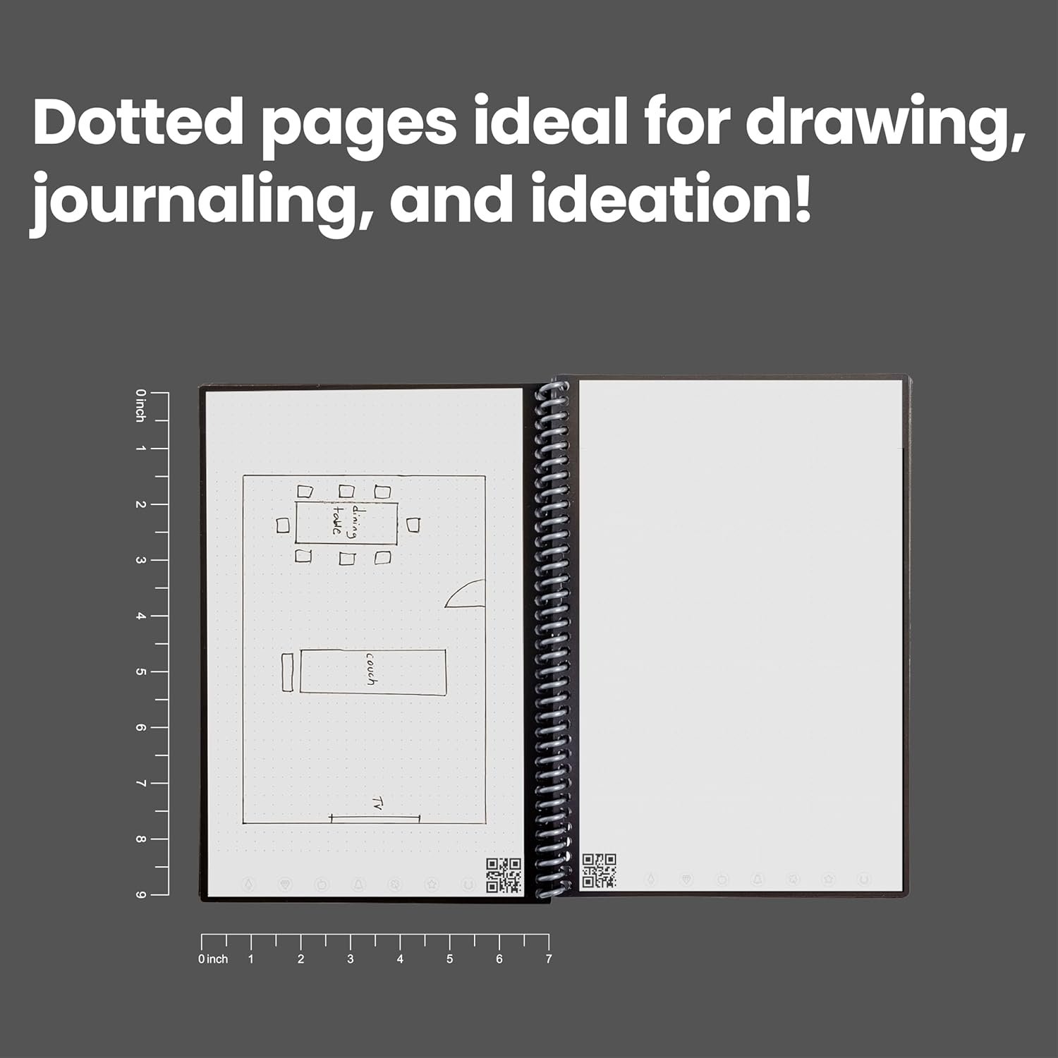 Unlock your creativity and enhance your productivity with the Rocketbook Core Dotted Notebook, the perfect companion for drawing, sketching, and more. Ideal for college students, working professionals, teachers, and anyone who values organized note-taking, this notebook combines traditional design with modern technology for a superior writing experience. This versatile notebook features a durable, waterproof cover and thick, reusable pages. The side spiral design allows the notebook to lay flat, making it a perfect canvas everything from bullet journaling and creating layouts to graphing equations, artistic sketches, and visualizing diagrams. Its dotted pages are ideal for precise geometry, shapes, and grid views, allowing for flexible, flowing ideas and artistic expression. The Rocketbook Core Dotted Notebook is app-connected, so you can easily save, organize, and share your notes and visual representations. Use it to sketch out concepts, brainstorm thinking ideas, or engineer detailed plans. The included Pilot Frixion pen lets you erase and switch between projects with ease, enhancing your productivity and providing the freedom to adapt your notebook to any task.