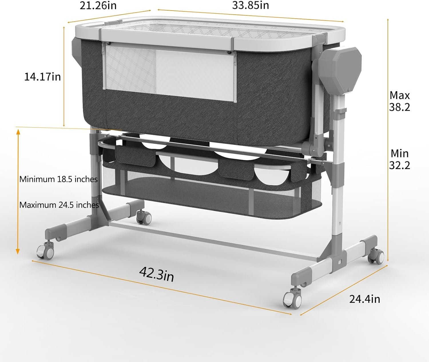 The bassinet bedside sleeper is equipped with a large storage basket to conveniently store baby necessities for easy access