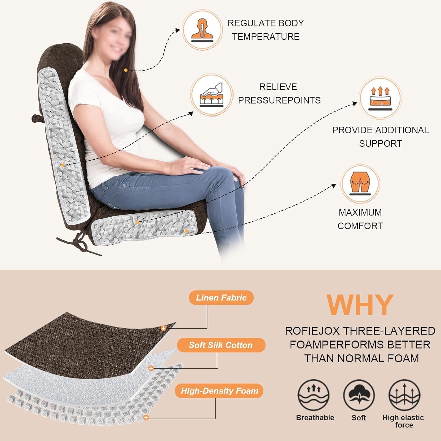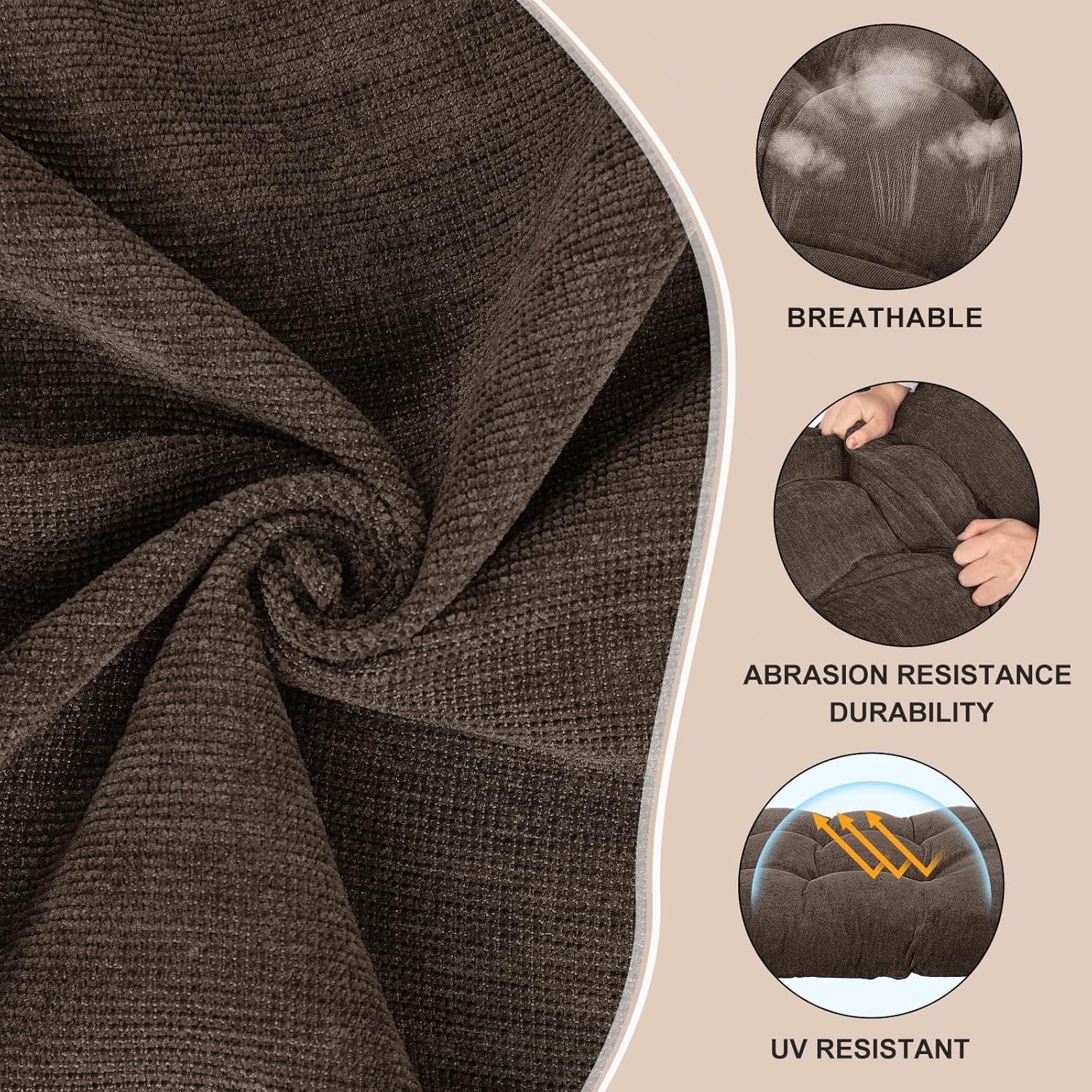 Premium High Resilience Filling: Expertly filled with 70D high-density foam particles, meticulously cut to maintain shape and ensure odor-free, resilient support. Lightweight, breathable, and long-lasting for enduring comfort