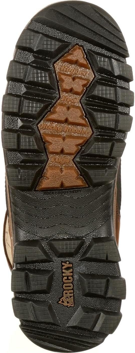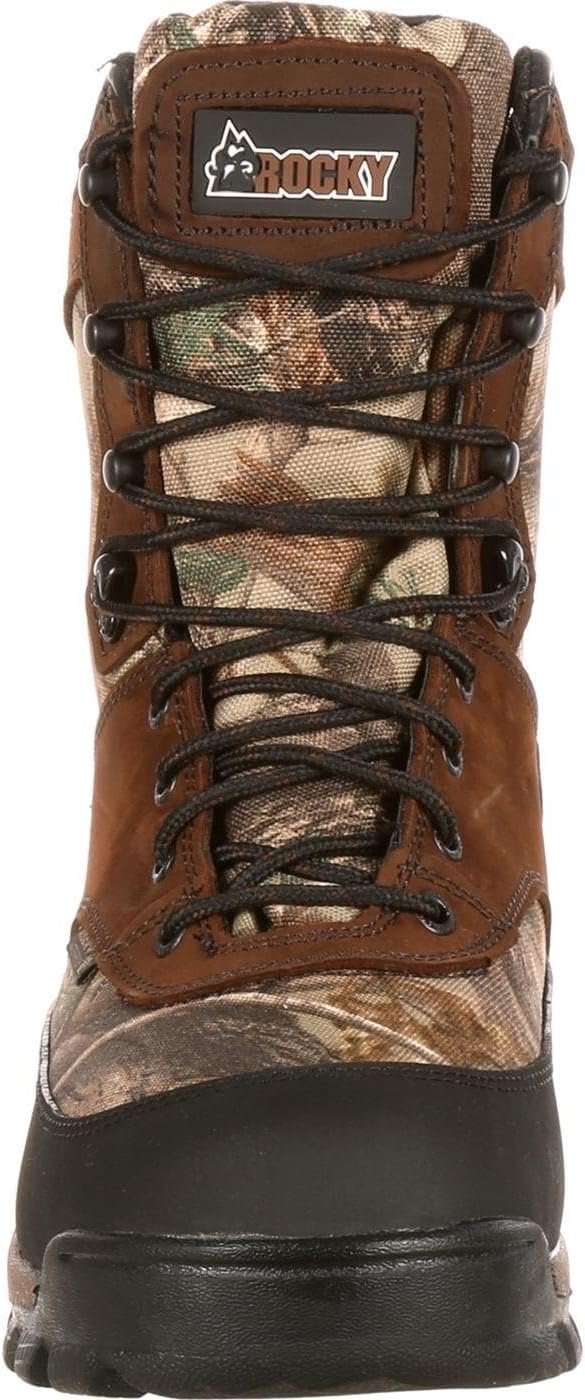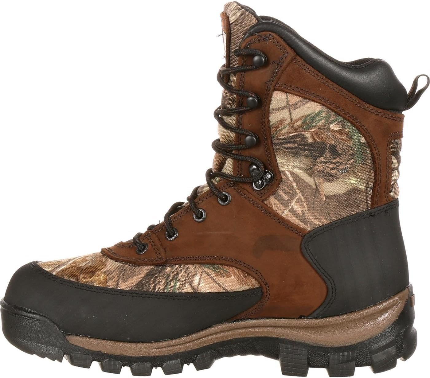Rocky Core Waterproof Insulated Outdoor Boots RealTree Camo are great for hunting, with hiking or working outside. Inside, 400 grams of 3M Thinsulate Ultra Insulation provide protection from the cold without adding bulk. Rocky Waterproof Boot construction makes sure your feet stay dry. The upper is a combination of full-grain leather and 900-denier nylon for strength and resistance to abrasions. A raised toe bumper and rubber on the toe and heel protect the footwear from cuts and abrasions in these hunting boots. The woven Rocky pull loop on the back of these 8-inch boots helps you get the boots on easily. The hard-wearing outsole is durable and aggressive to improve your stability and traction as you walk across uneven, rough or icy terrain. Comfort comes from a removable EVA footbed, as well as a padded collar and padded tongue. You want to get the most out of your hunting and outdoor experiences; lacing up these Rocky Core insulated waterproof boots helps you do that.