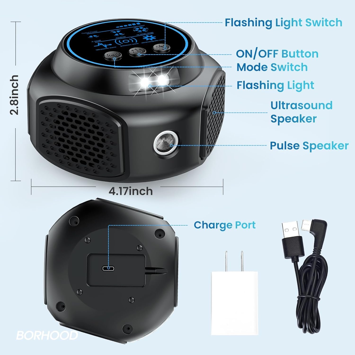 Friendly to Humans and Pets: rodent repellent is no kills, no poisons, no traps and no chemieals, with a sound wave frequency range of 25-65KHz, which is all safe and harmless to humans and pets.