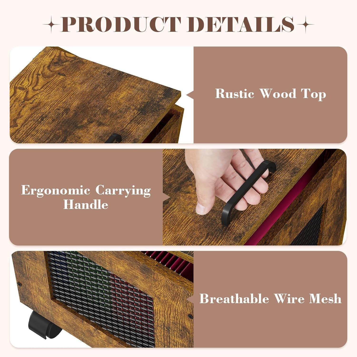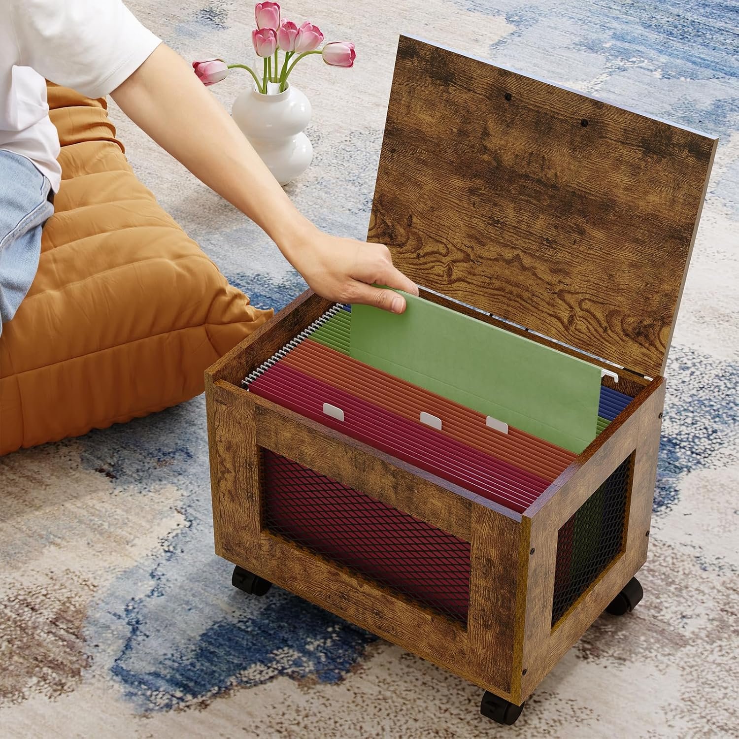Rustic Wood Basket with Lid:This small file cabinet comes with a lid and a handle on the lid, make it easy to pick up the files as well as prevent files from getting dusty