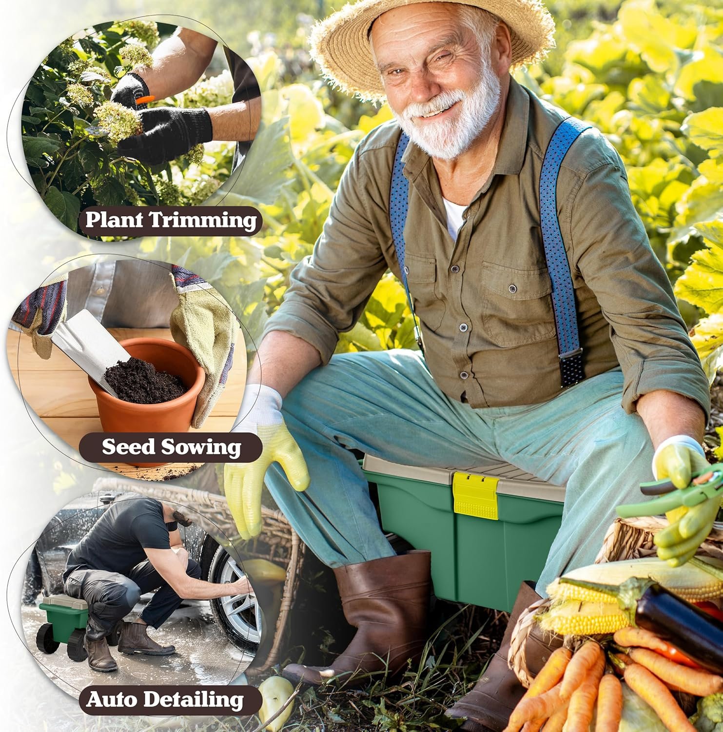 SPACIOUS STORAGE – The spacious interior and removable tool tray in this garden scooter are perfect for keeping all your tools and supplies in one convenient place, allowing easy storage of gloves, planting shovels, gardening shears, and more.