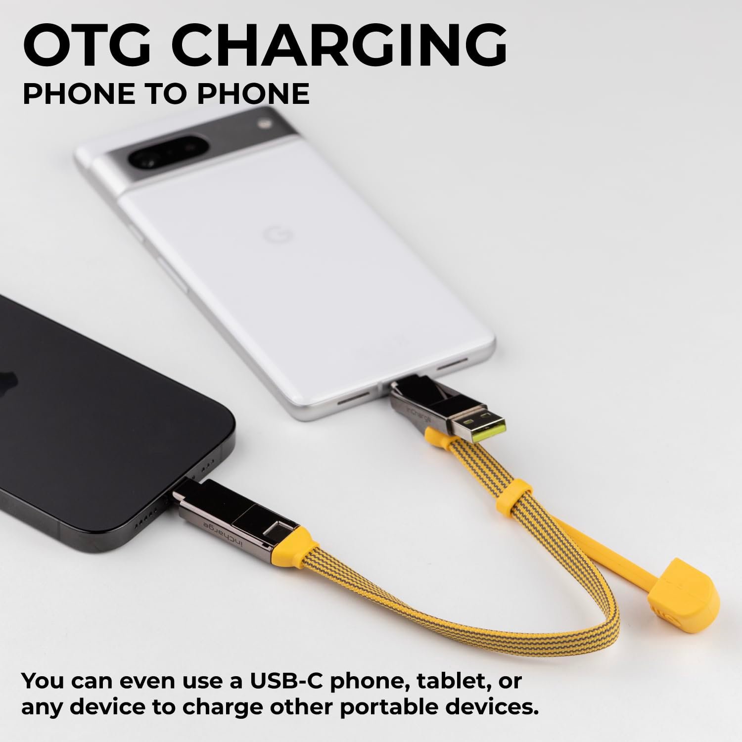 CABLE 6 IN 1 – InCharge XL has two input ports and three output ports for a total of 6 different connections. You can connect InCharge XL to any power source, to charge any device anywhere (Lightning, USB-C and microusb)