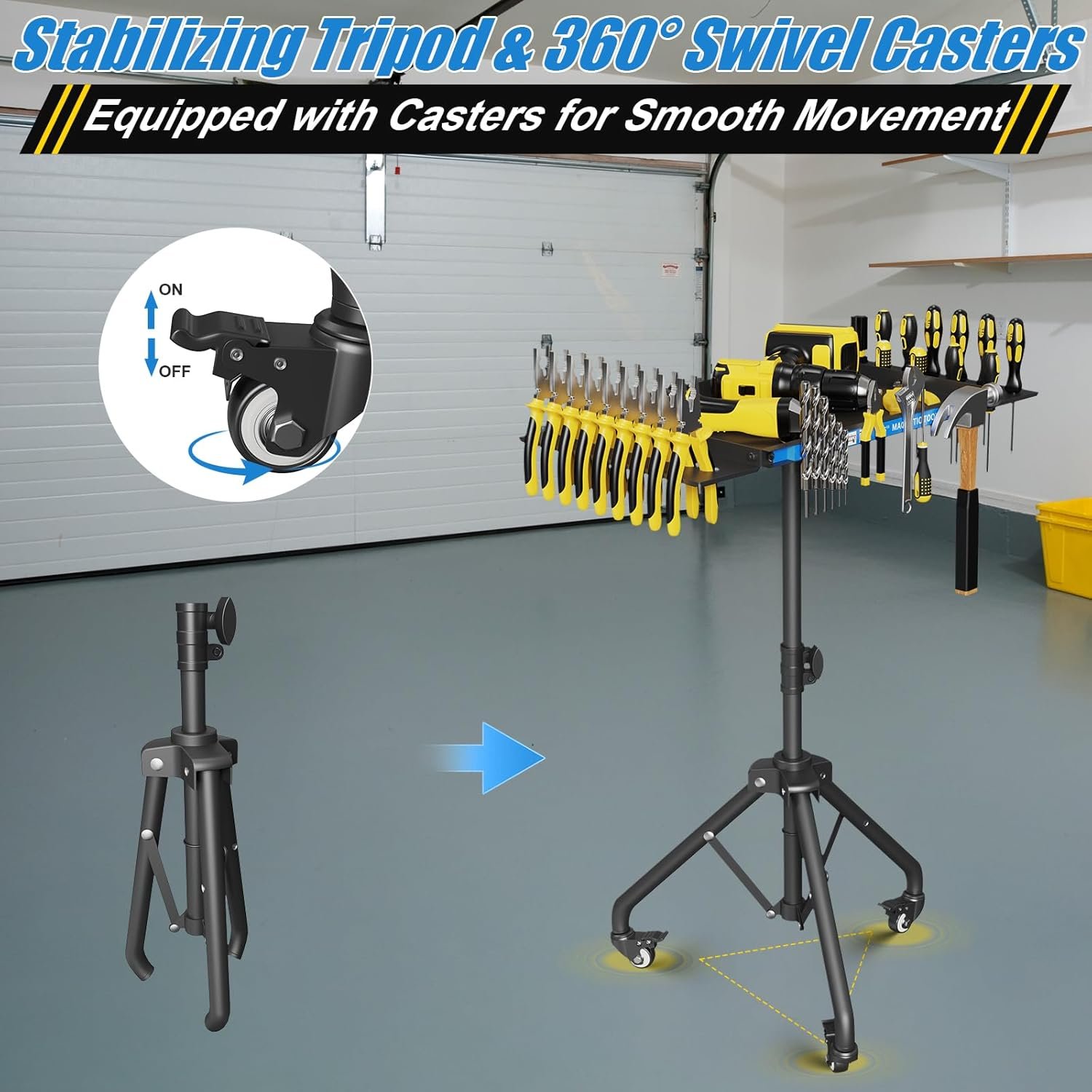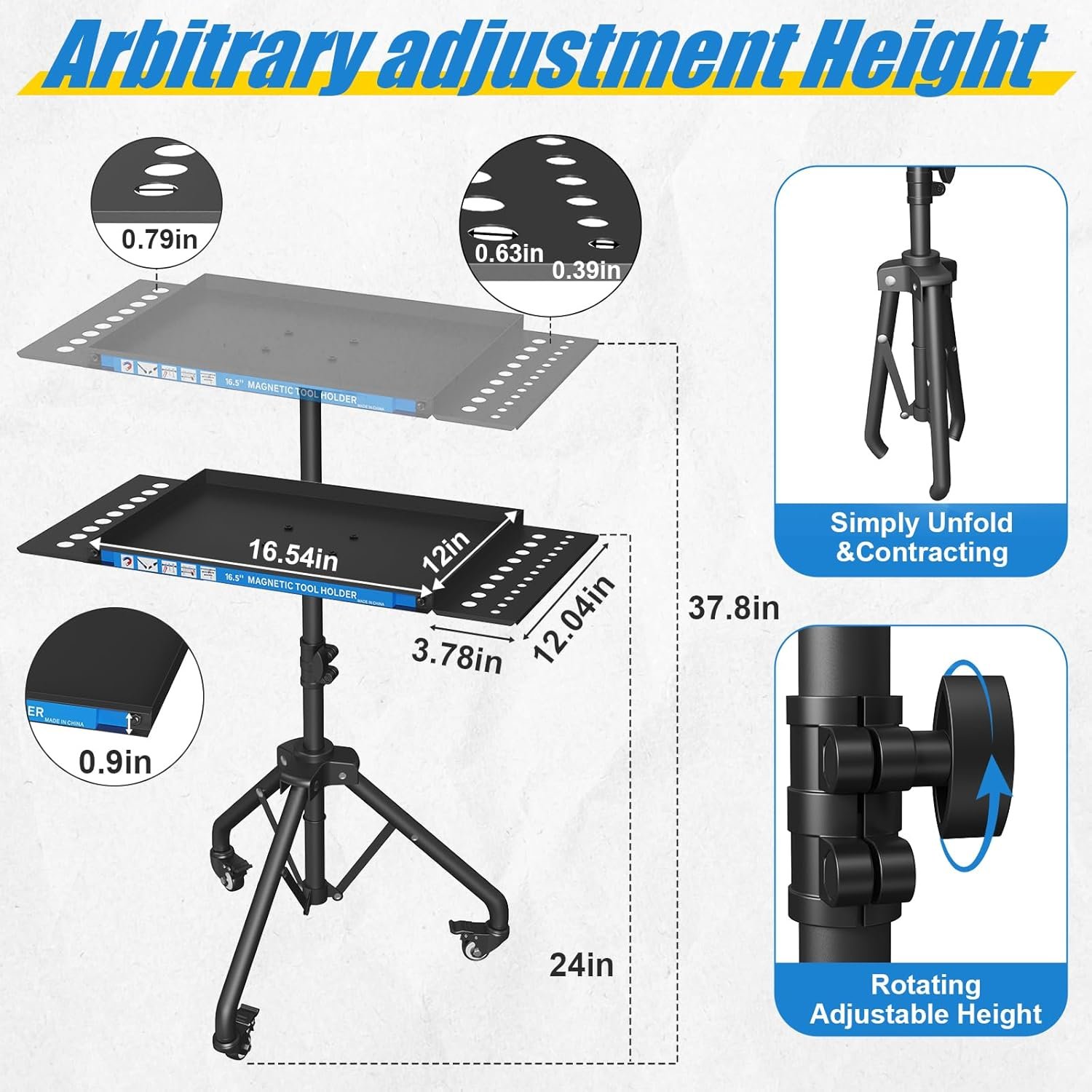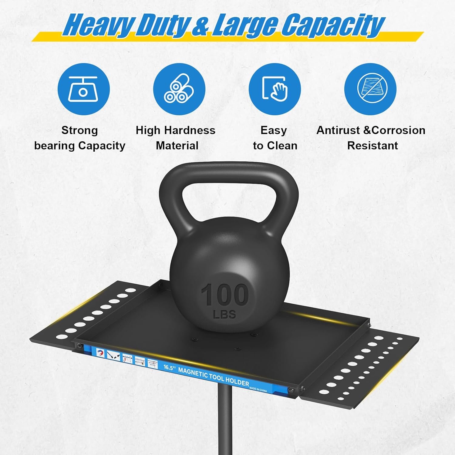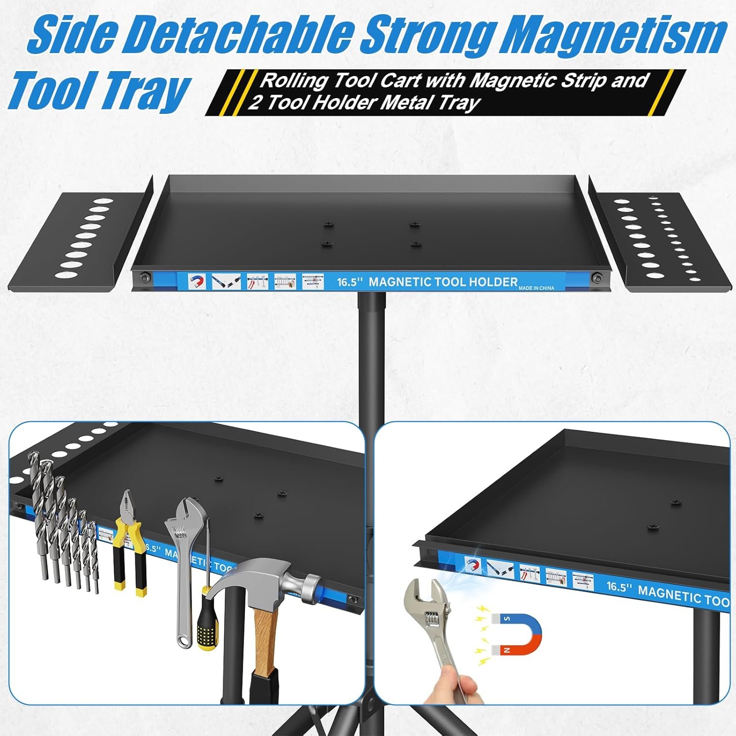 WITH MAGNETIC STRIP HOLDER – The utility cart comes with 2 magnetic strip on the side of the tool tray to hold some metal tools, screwdrivers and pry bars, etc