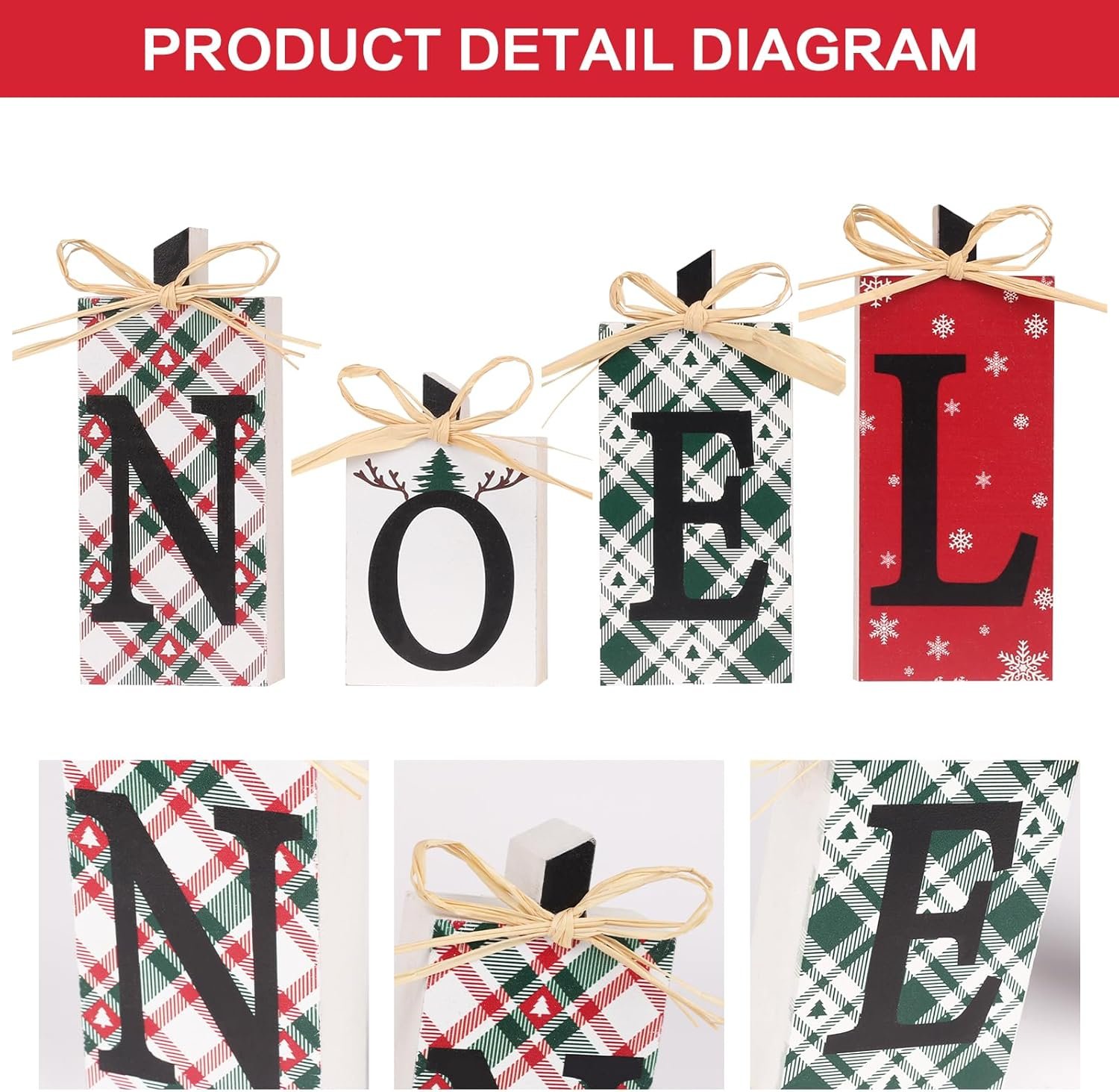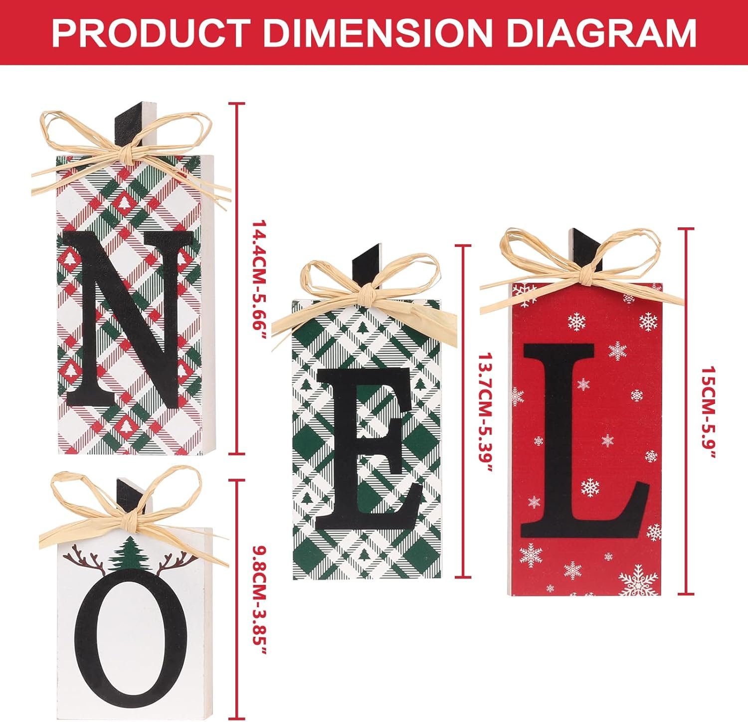 SIZE: These Christmas desktop decorations come in sizes of “N” 14.4 cm/5.66 inches, “O” 9.8 cm/3.85 inches, “E” 13.7 cm/5.39 inches, and “L” 15 cm/5.9 inches. Suitable in size, it can be placed on shelves, counters, or serve as the core of a dining table without taking up too much decorative space.
