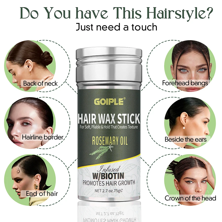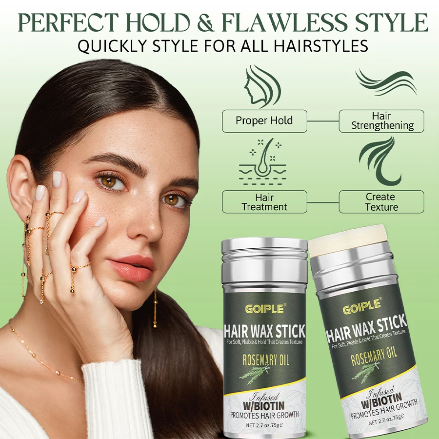 Rosemary Wax Stick No Residue Nourish Styling Wax Rod for Control Flyaway Hair Pomade Hair Care Shape Products for Women and Kid