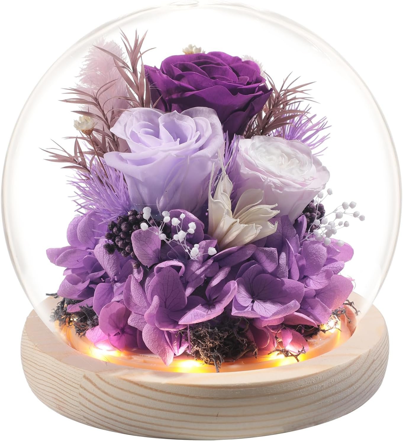 Roses Gifts for Her, Flowers Delivery Prime Rose in Glass Dome with LED Light – Gifts for Mothers Women Mom Grandma Girlfriend Wife