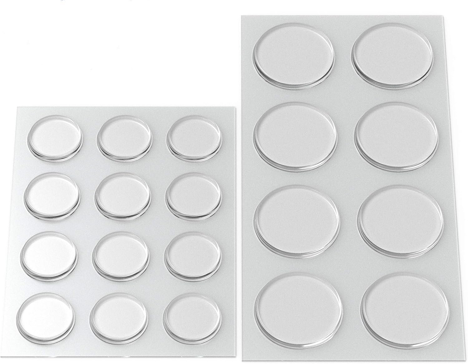 Round Clear Adhesive Bumpers Combo (Large, Medium) – Transparent Self Stick Rubber Pads for Glass Table Top, Furniture, Laptop, Mirrors – 20 PCs
