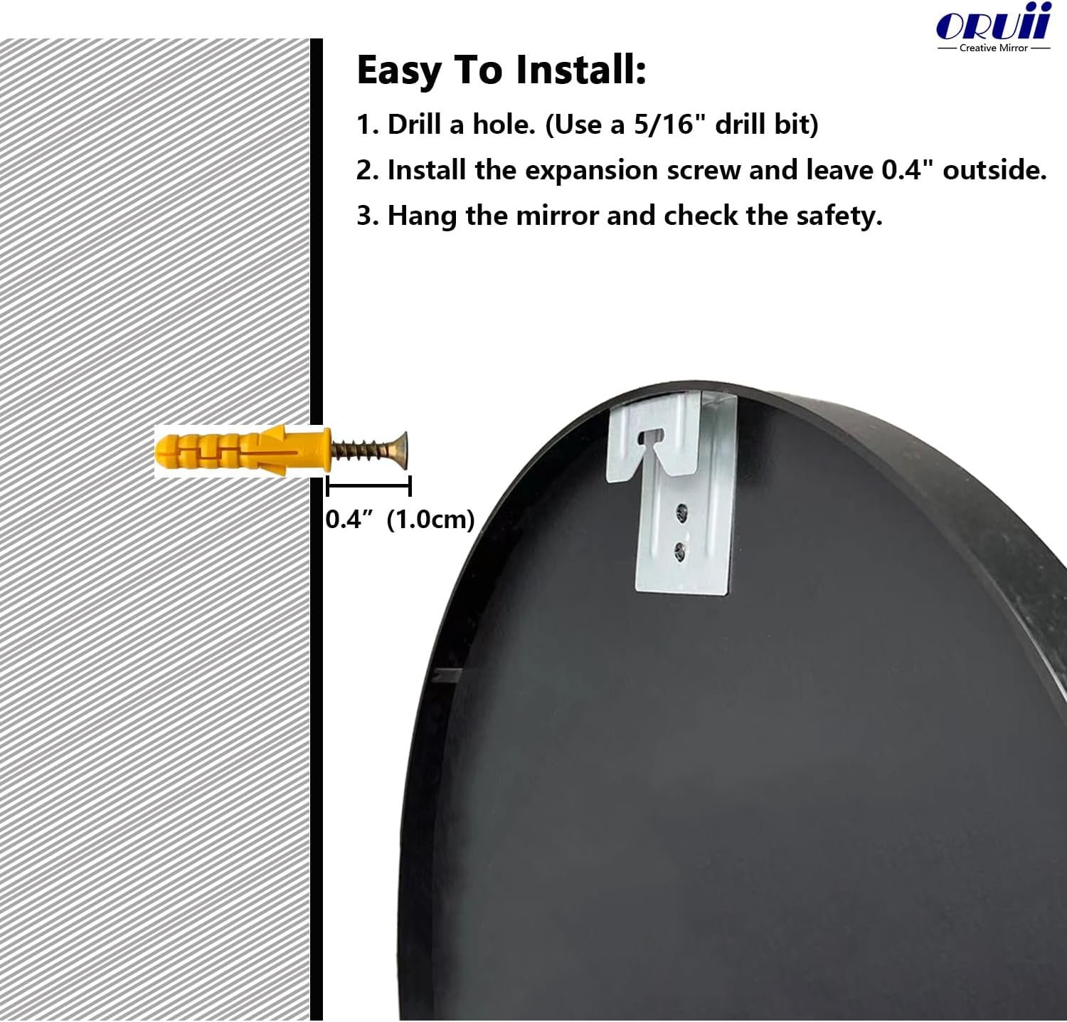 Easy To Install: The round mirror can be installed easily. The hook is pre-installed and screws included.