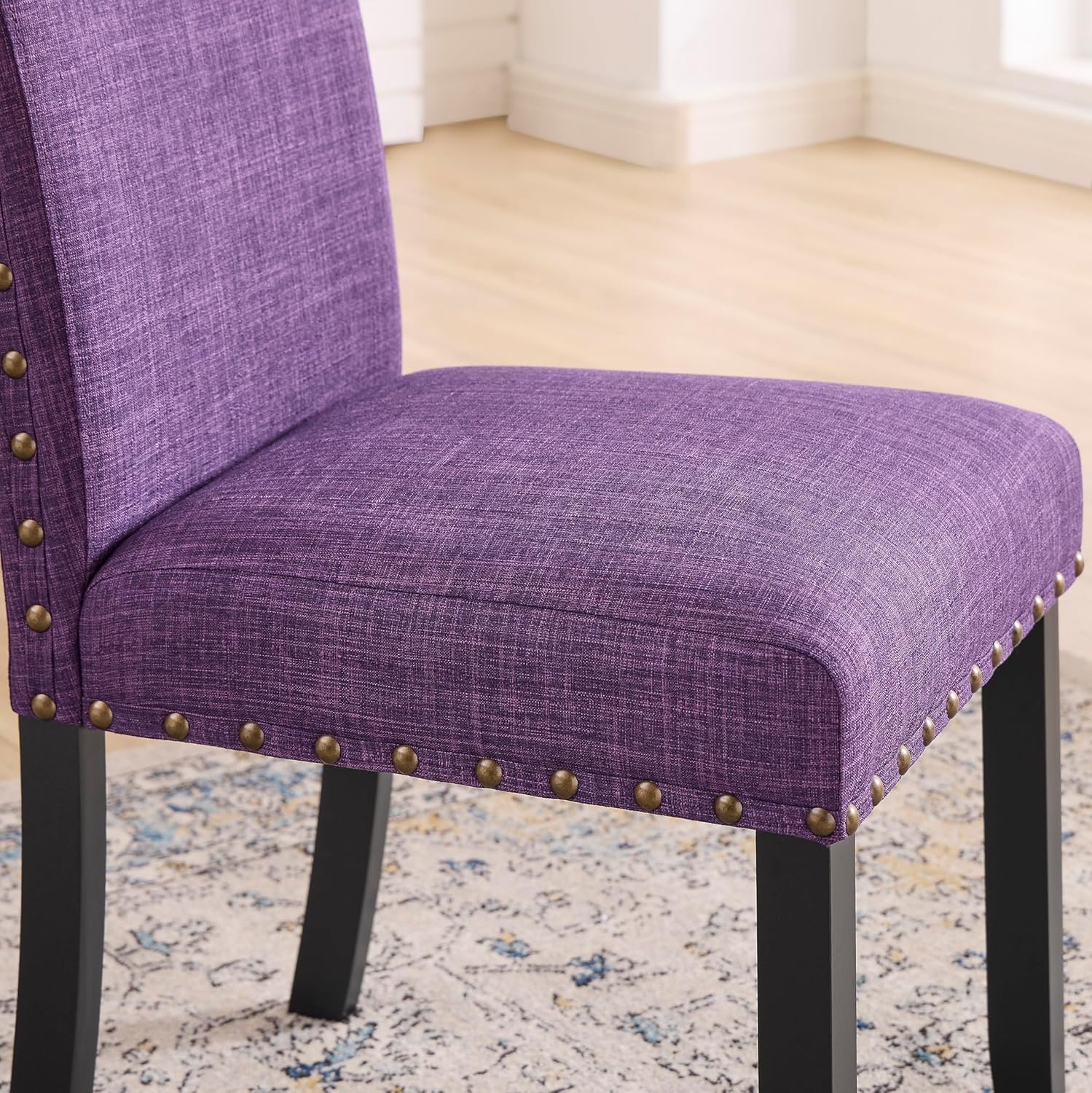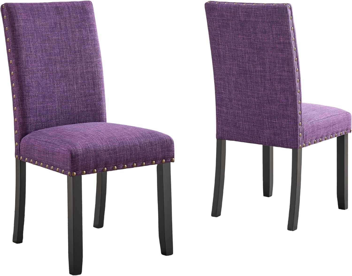 Roundhill Furniture Biony Fabric Dining Chairs with Nailhead Trim, Set of 2, Purple