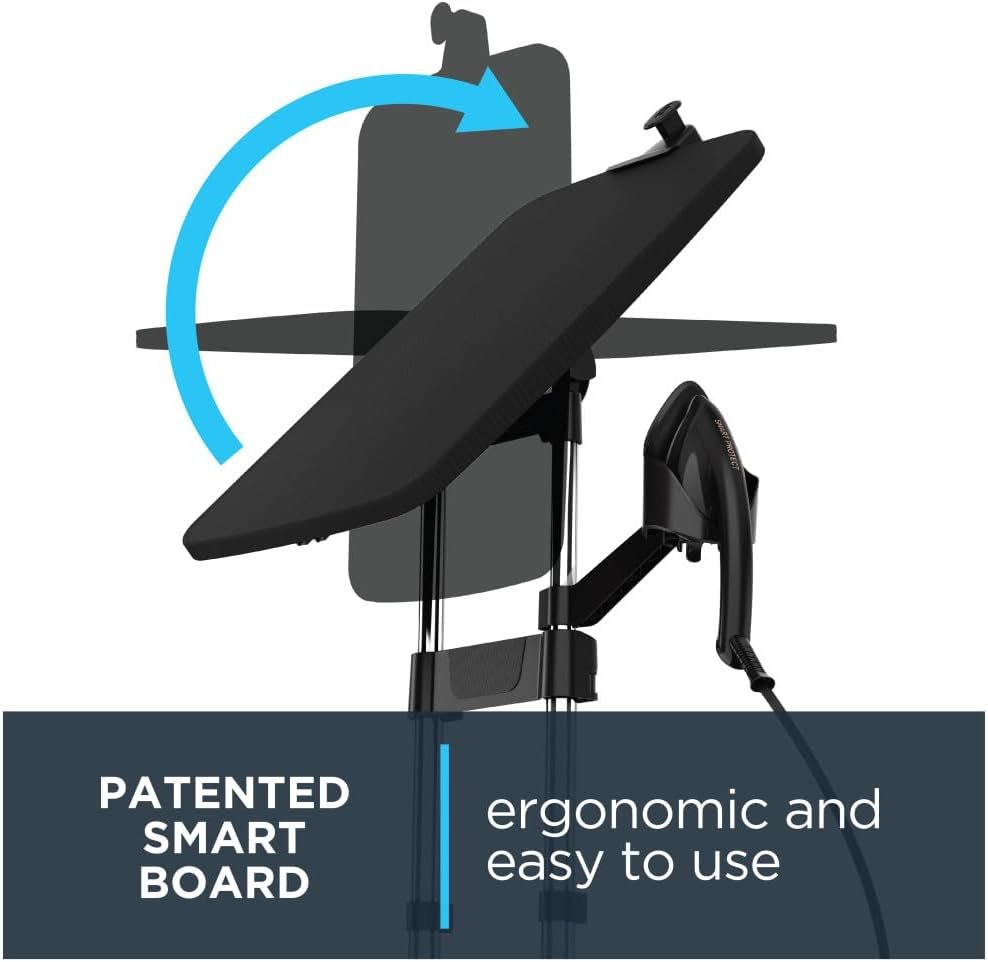 All-in-One Design: Bring together the power of an iron and the ease of a steamer. IXEO and its patented 3-position Smart Board, adjustable in height, provides the versatility to iron horizontally, steam vertically, or work at a 30° inclined position.