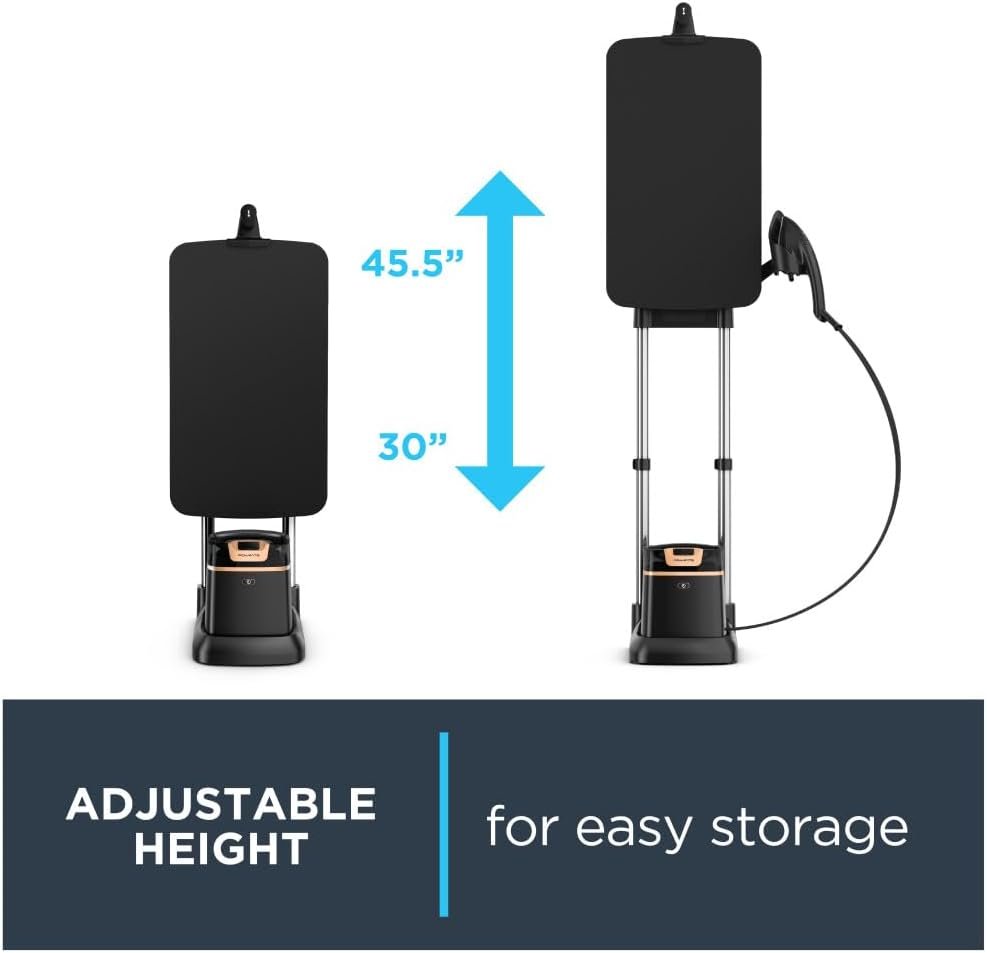 Rowenta IXEO Steamer for Clothes with Ironing Board 65 Inches 45 Second Heatup, 1 Liter Capacity 1500 Watts Ironing, Portable, Fabric Steamer, Garment Steamer, Adjustable QR1410,Black