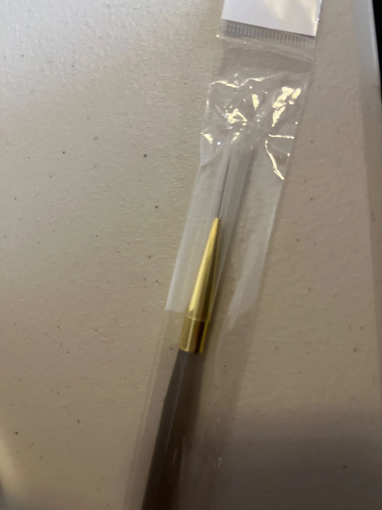 It arrived very well packaged and is a quite thin brush.