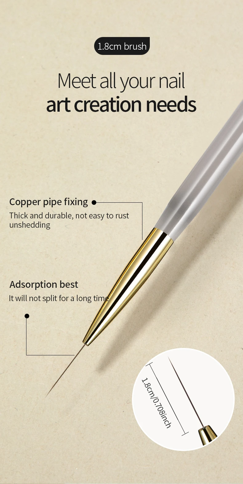 RSNAIL Nail Art Liner Brushes French Stripe Nail Line Painting Pen 18mm Slender Long Line Drawing Brush UV Gel DIY Manicure Tool