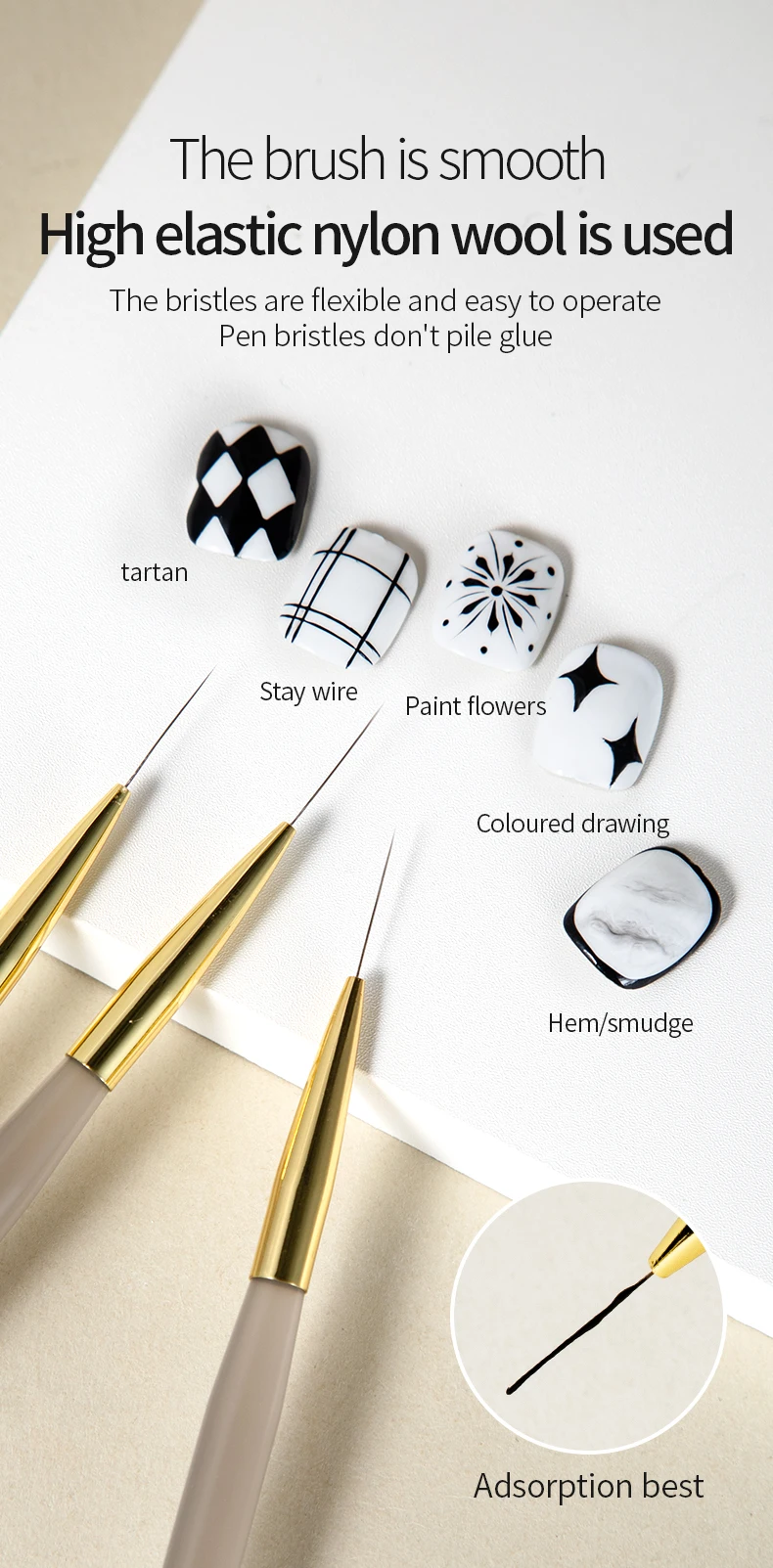9 reviews for RSNAIL Nail Art Liner Brushes French Stripe Nail Line Painting Pen 18mm Slender Long Line Drawing Brush UV Gel DIY Manicure Tool