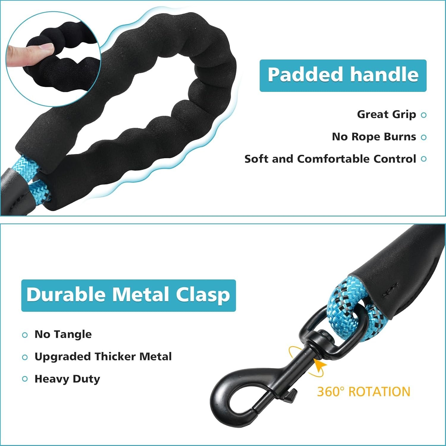 Rttochfy Rope Dog Leash 2/4/5/6/8/10 FT with Comfortable Padded Handle and Highly Reflective Threads for Small Medium and Large Dogs Heavy Duty (1/2″-5 FT, Blue)