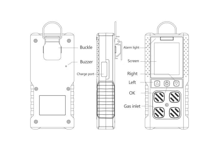 Gas type: Oxygen/carbon monoxide/hydrothion/combustible gas( O2/CO/H2S/LEL)