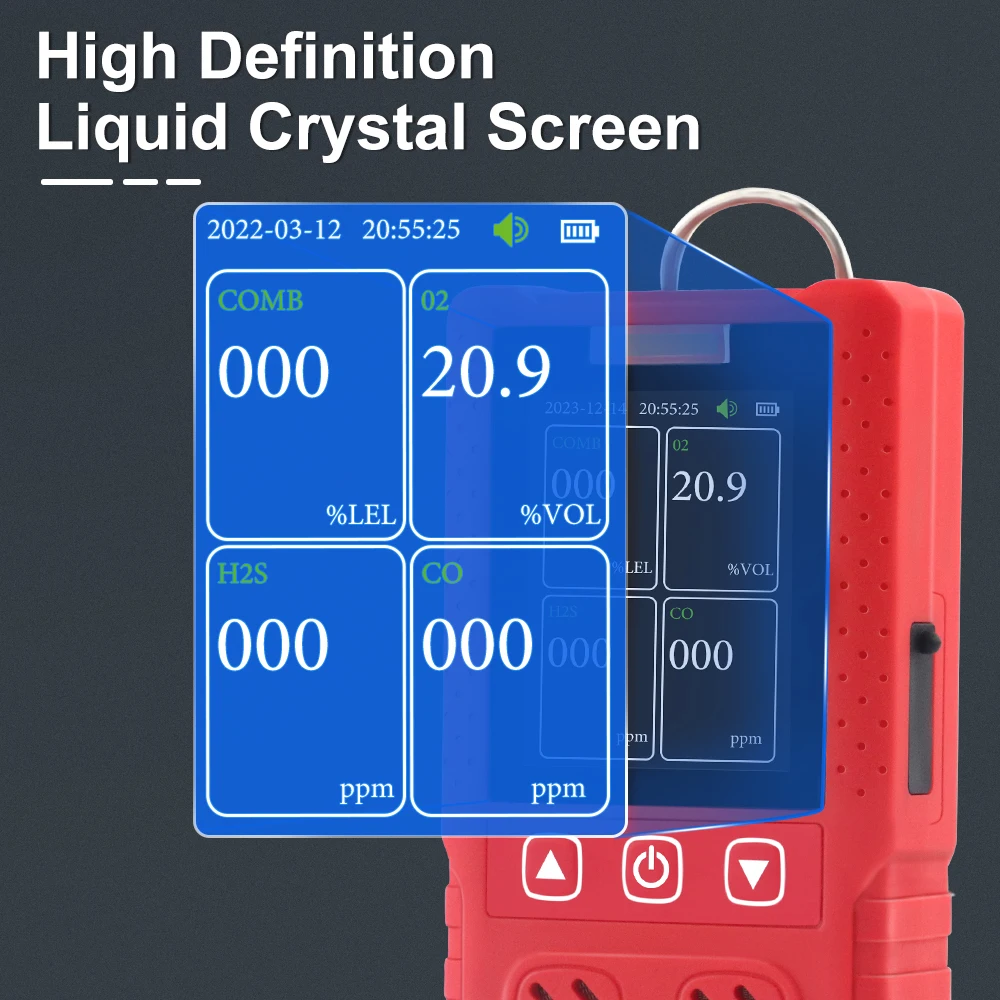 RTTPP Portable 4 in 1 multi Gas Detector LEL H2S CO O2 Oxygen Hydrogen Sulfide Carbon Monoxide Combustible Gas Leak Detector