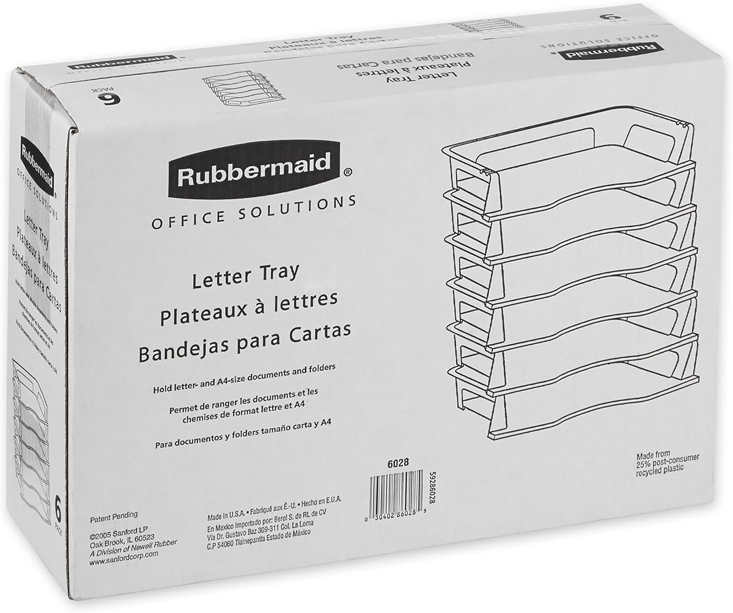Rubbermaid Regeneration Letter Tray, Six Tier, Plastic, Black (86028)