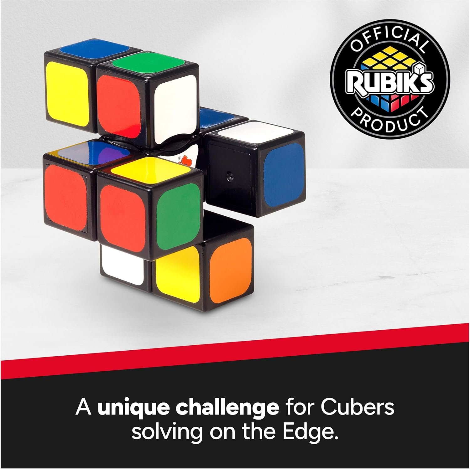 The 3x3x1 Cube is a single layer problem solving puzzle toy. Its simplicity makes it great for beginners who want to build up skills to solve the iconic 3×3 Rubik’s Cube. The Edge consists of nine Cubes arranged in a square. It features nine white and yellow stickers on the top and bottom and three green, orange, blue and red stickers on the sides. Only the corner pieces can switch places, so it has only 192 possible permutations. The Rubik’s Edge is all about smart play and can improve your muscle memory and hand-eye coordination. A puzzle toy that is not only about fun but improves your motor and problem-solving skills while allowing your imagination to take control.