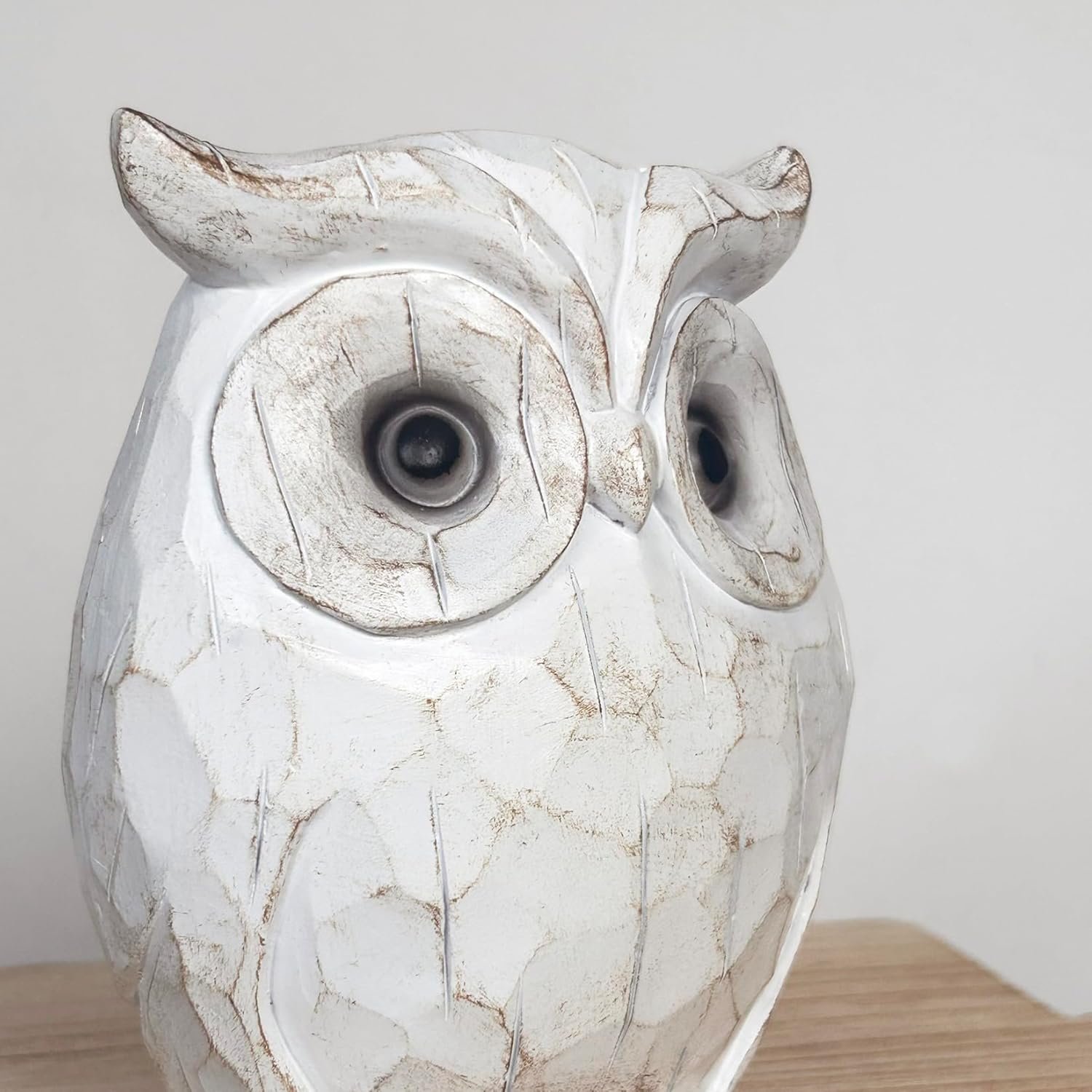 Charming and Unique Design: This lovely, chubby owl figurine features intricate hand-carved wood details and resin craftsmanship, making it a unique and eye-catching piece that adds character to any room