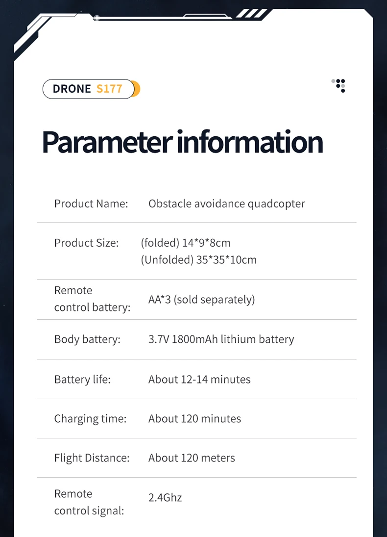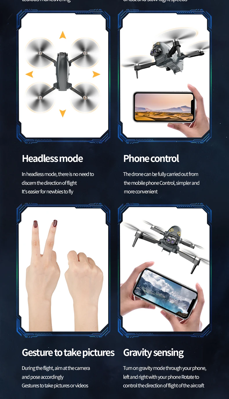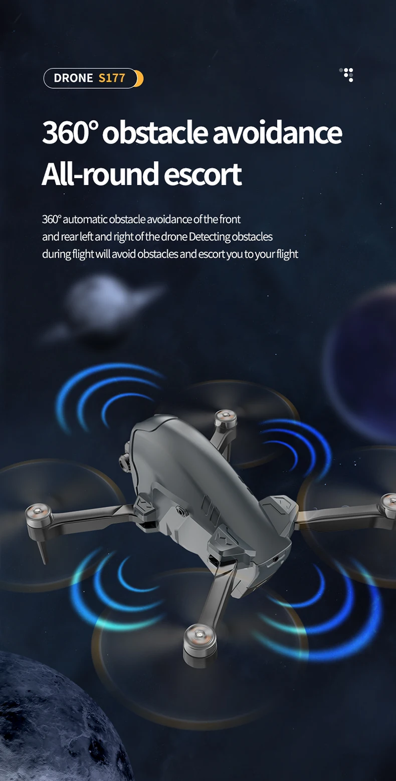 360° automatic obstacle avoidance ofthe front and rearleft and right of the drone Detecting obstacles during flight will avoid obstacles and escort you to your flight