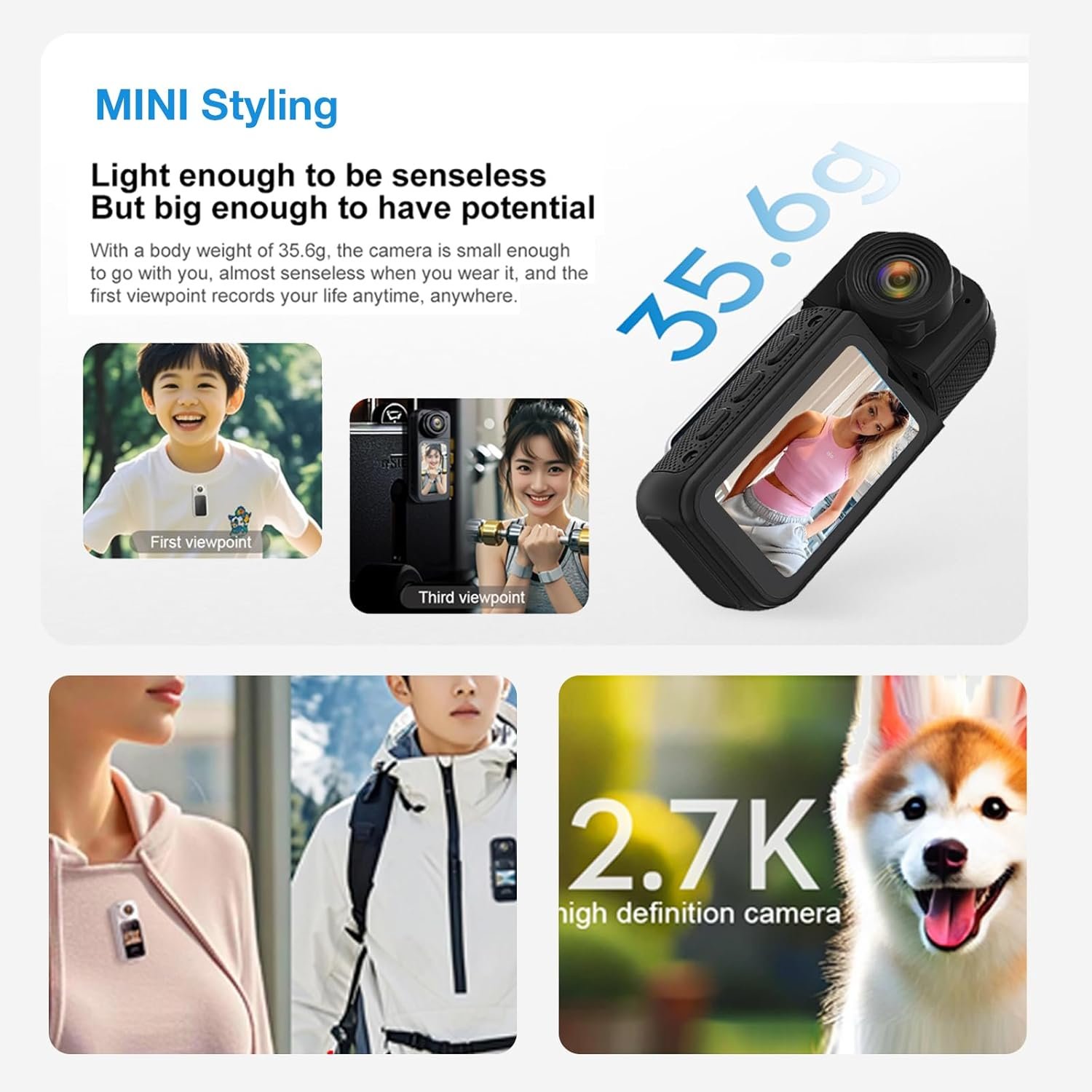 Wide Application Scenario: Small body camera can record life, such as baby and pet dynamics. Vlogging camera can be worn on the chest, or placed in the office, living room, bedroom, kitchen or anywhere