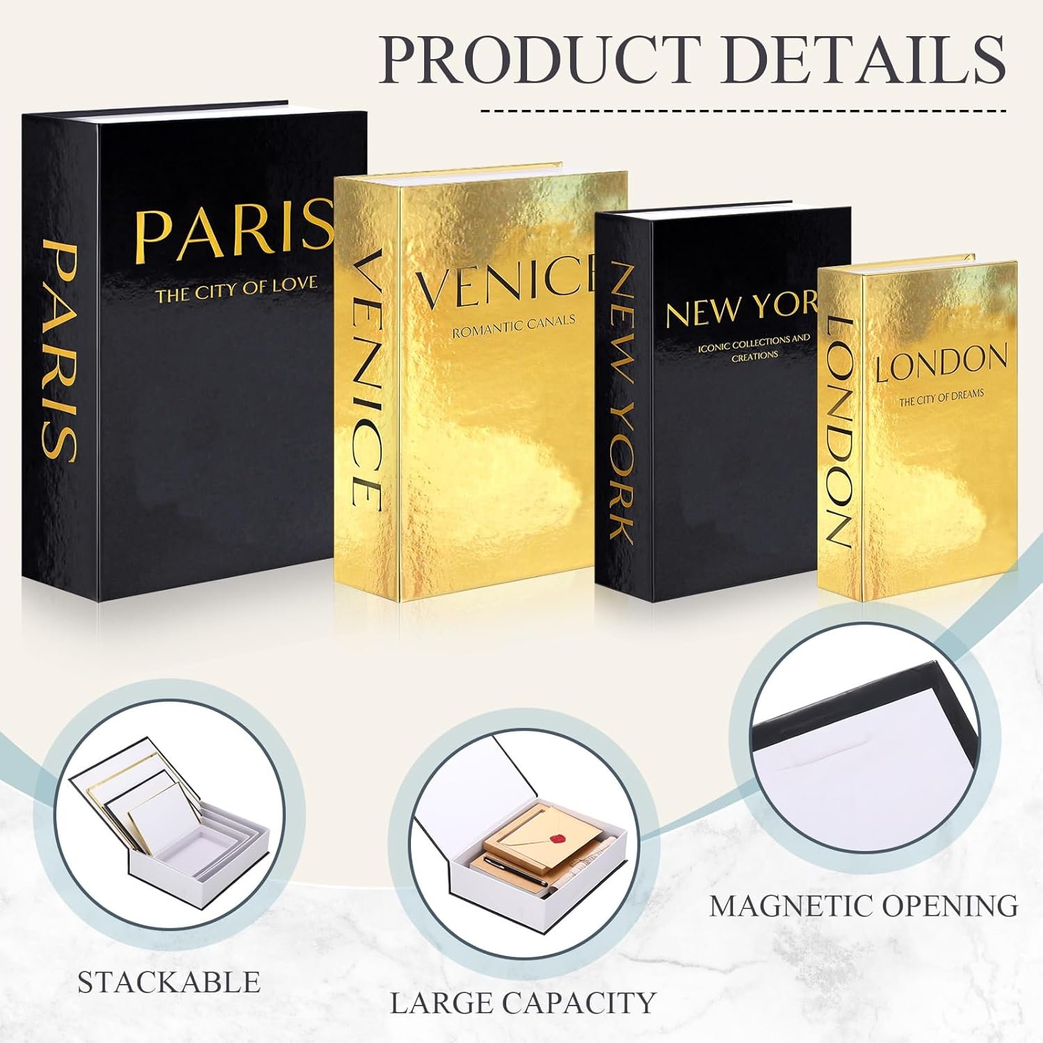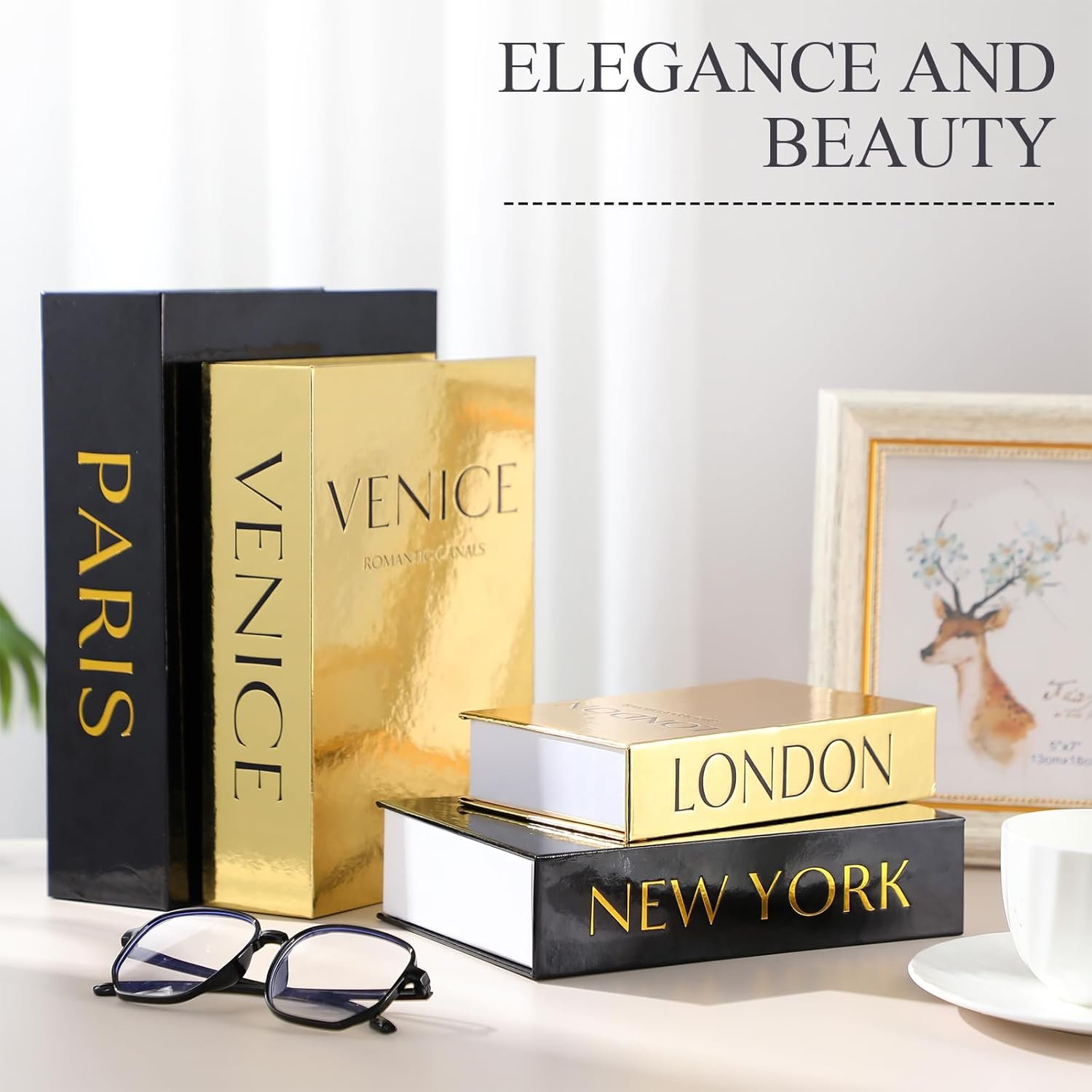 Elegant Design: these decorative book boxes feature elegant glittering cover and gold stamped fonts, covering the world’s most tourist filled countries, and the classic and modern design can complement many spaces