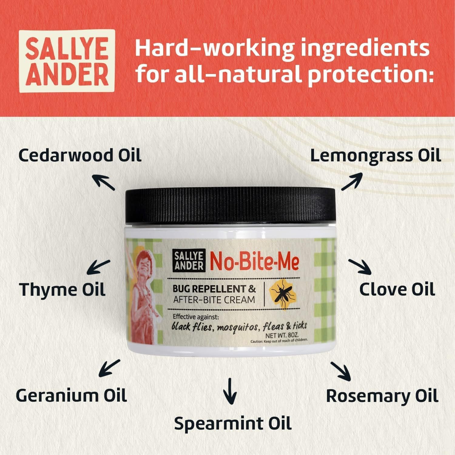 SALLYEANDER No Bite Me All-Natural Bug & Insect Repellent – Anti Itch Cream – 8 oz – Safe for Kids and Infants – Repels Mosquitoes, Black Flies, Fleas, and Ticks