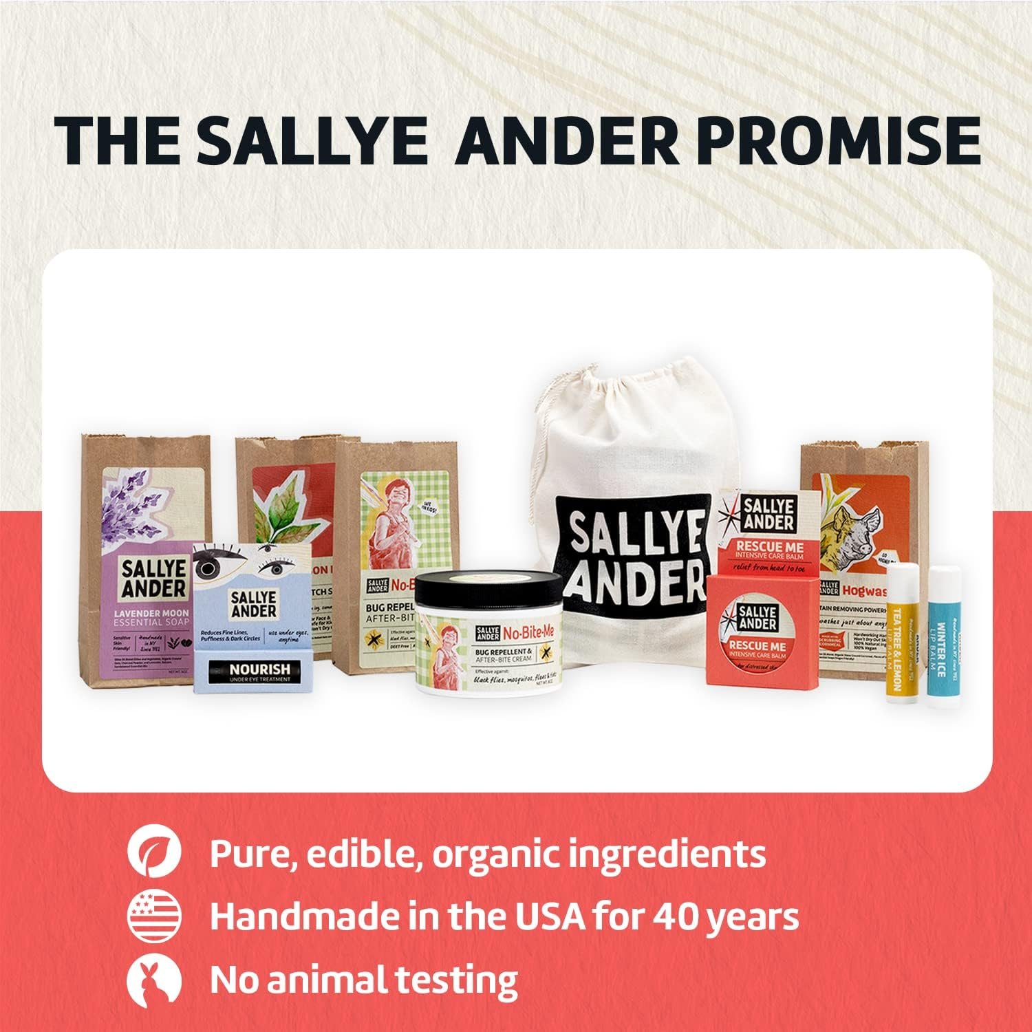 SALLYE ANDER PROMISE: When you buy Sallye Ander products, you can rest assured knowing you are supporting a company committed to quality and the environment. All products are 100% handmade in the USA from organic locally sourced ingredients, and we’re completely cruelty-free – EPA EXEMPTED PRODUCT