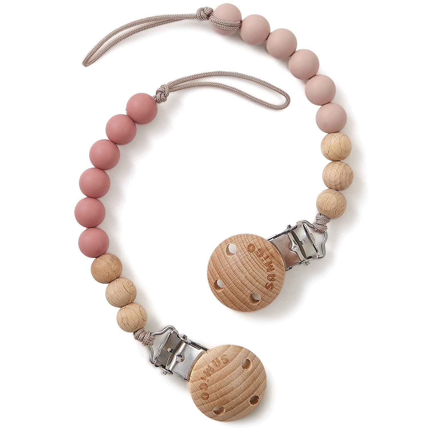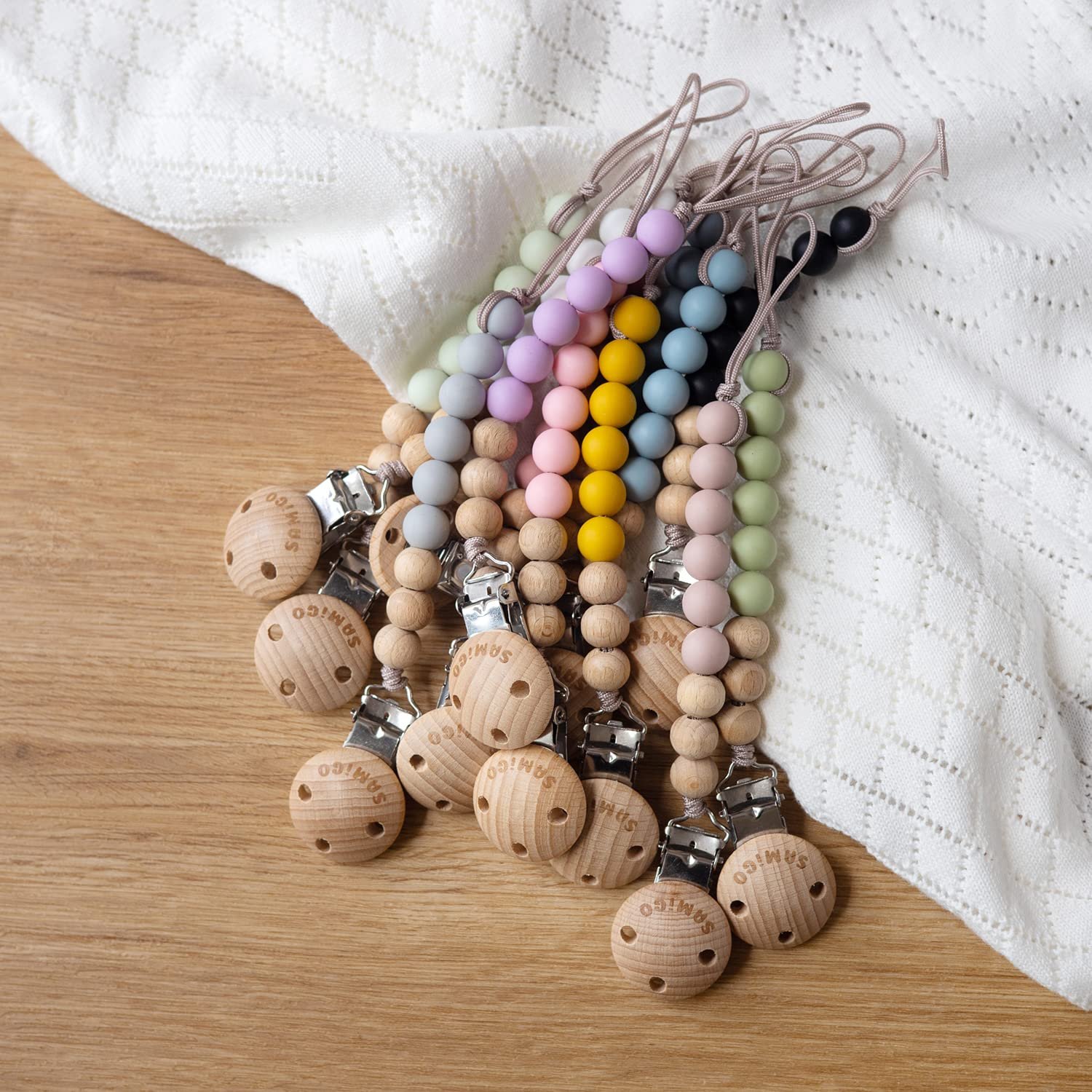 SAMiGO pacifier clips are designed to keep your baby’s pacifiers or binkies neatly within reach wherever you are. Available in 6 color combos, these paci holders are ready to add a pinch of cuteness to whatever your baby wears with a unique aesthetic appeal. Featuring a premium clasp, our paci clips stay more firmly secured to clothing without ruing any fabric while withstanding curious tugs from little hands. No more dropped or lost pacifiers!