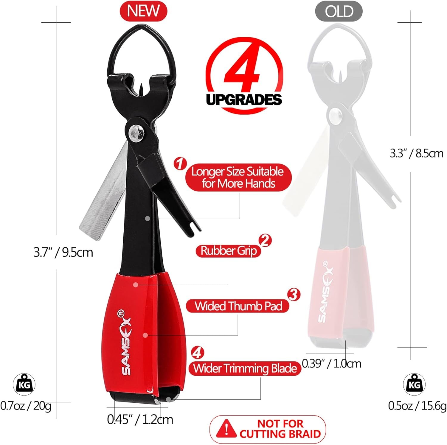 Multi-function fishing mono line nipper, stealthy matte black rust-resistant finish body and red dipped rubber grip