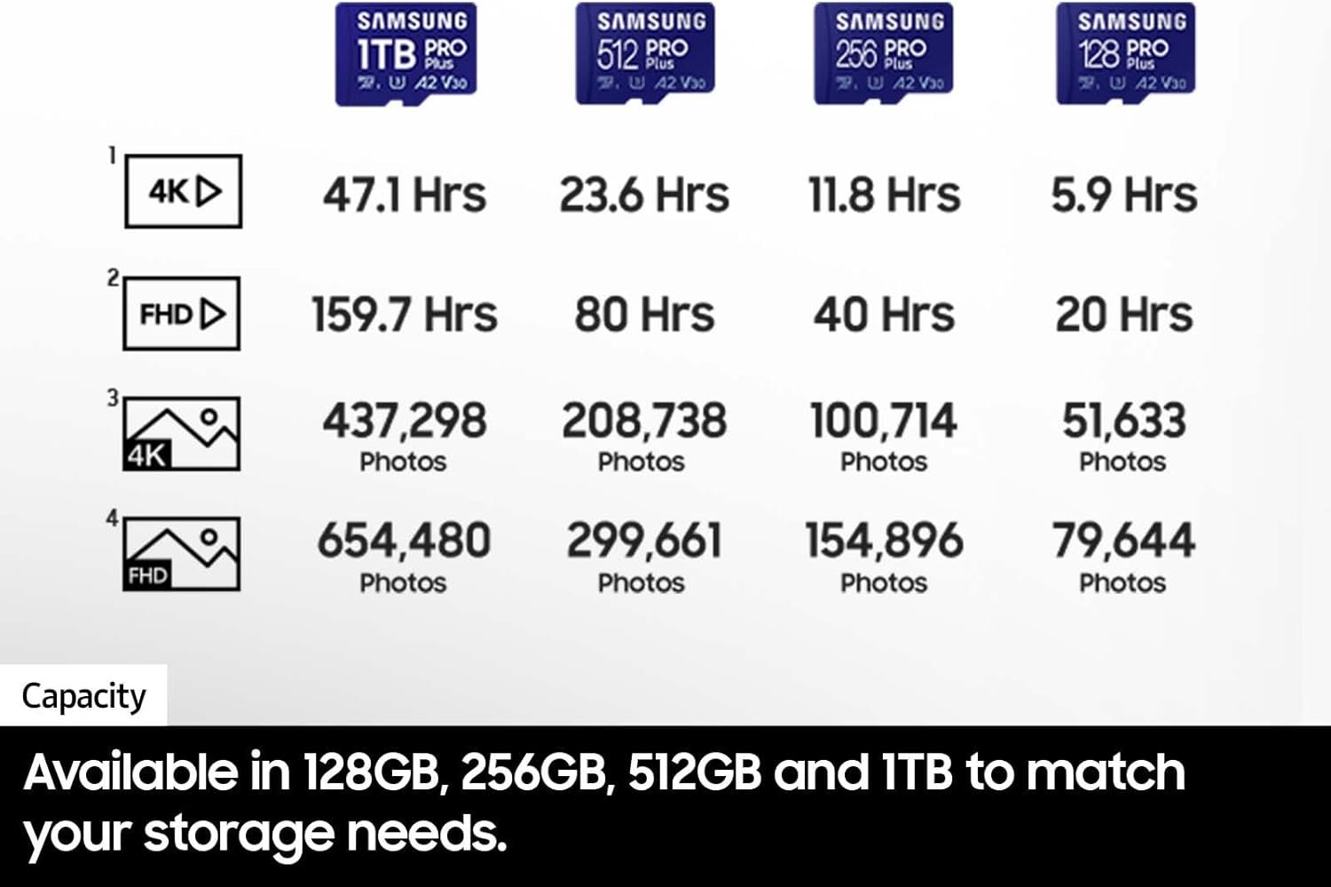 Samsung PRO Plus microSD Memory Card + Adapter, 256GB microSDXC, Up to 180 MB/s, Full HD & 4K UHD, UHS I, C10, U3, V30, A2, for Android Smartphones, Tablets, GoPRO, and DJI Drone (MB MD256SA/AM)