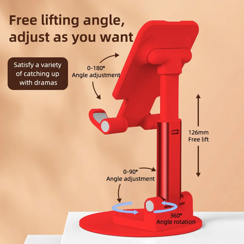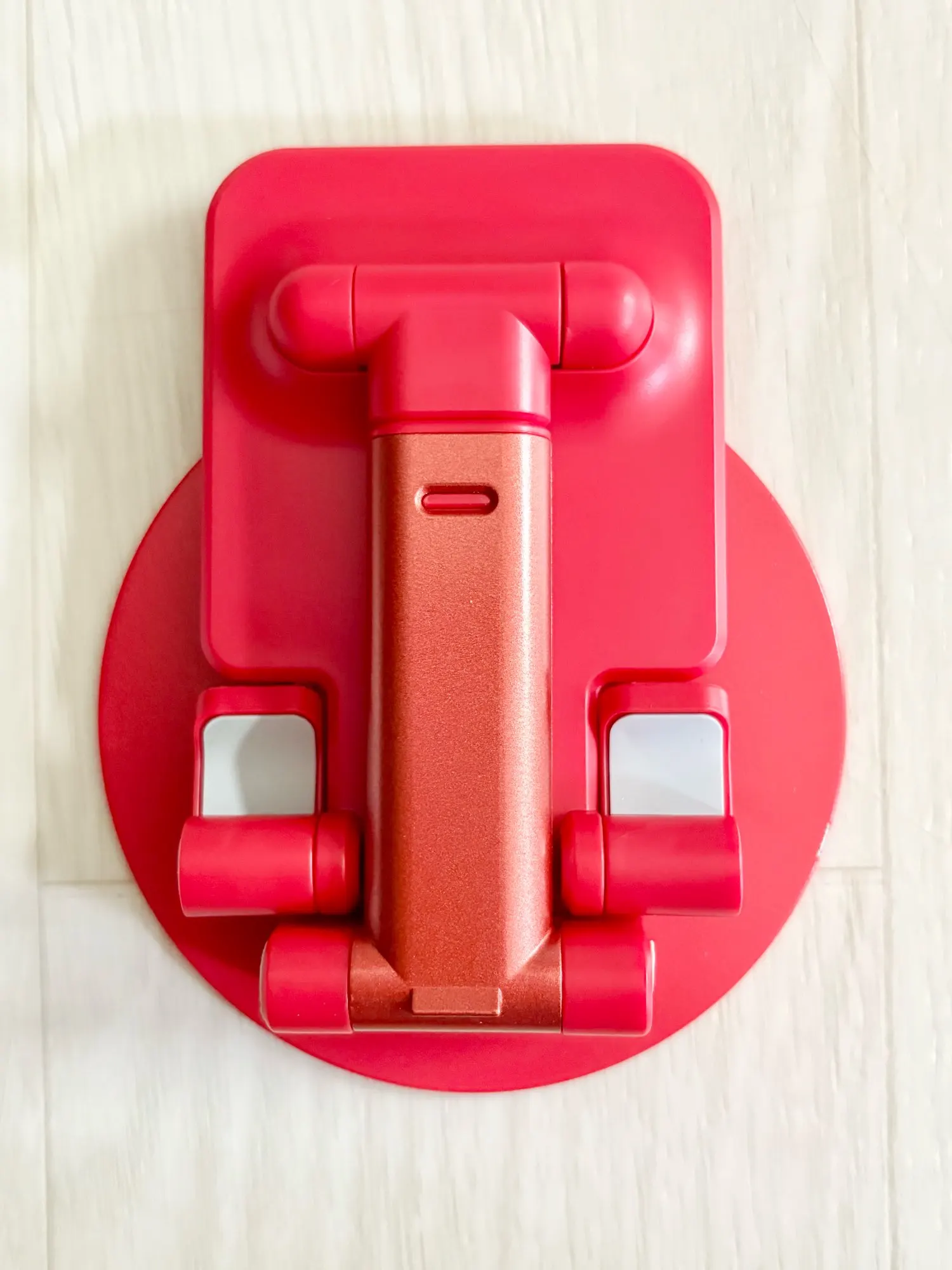 Cute phone holder has a heavy and stable base. Folds down for travel.