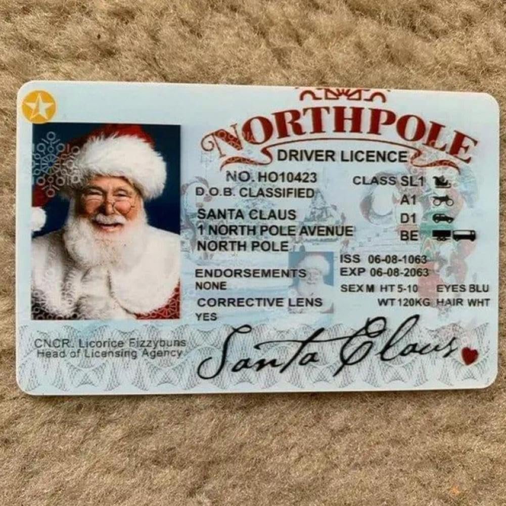 Authentic Looking Santa Sleigh Driver License. This professionally printed Santa sleigh license is made to look just like a real driver’s license. Made from high-quality plastic it looks and feels just like the real thing.