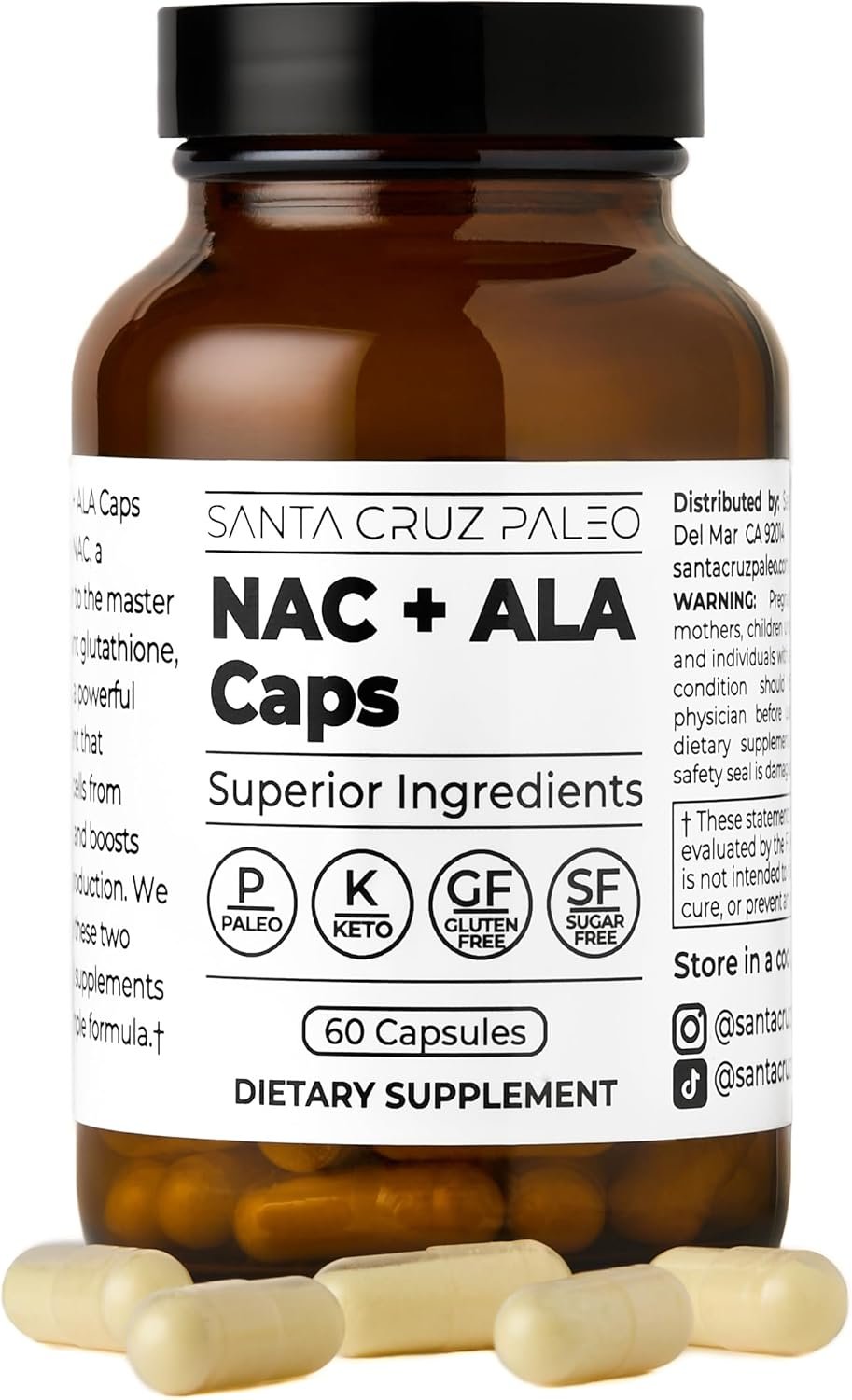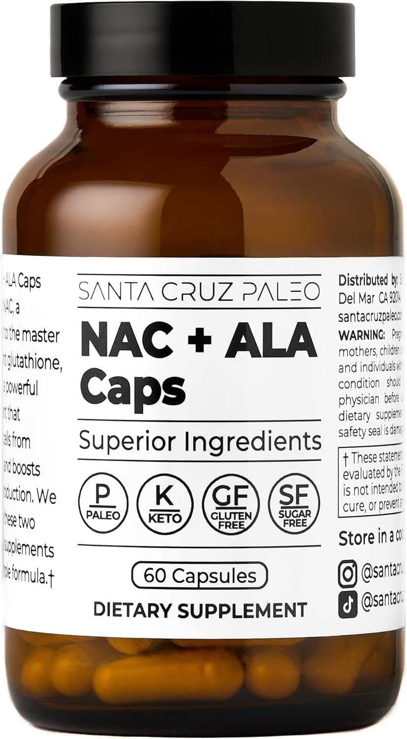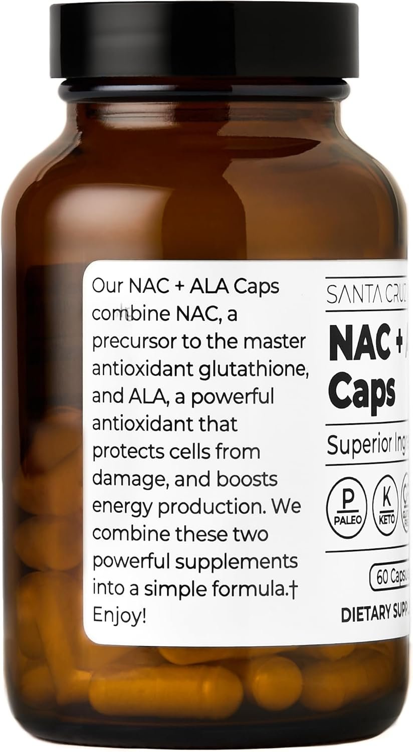 Santa Cruz Paleo NAC + ALA Capsules, This formula combines N-Acetyl Cystine and Alpha Lipoic Acid. Both support liver, skin, lung, sinus, brain, blood sugar, and overall health. Our formula has no fillers or binders and we use the highest quality sourcing available.