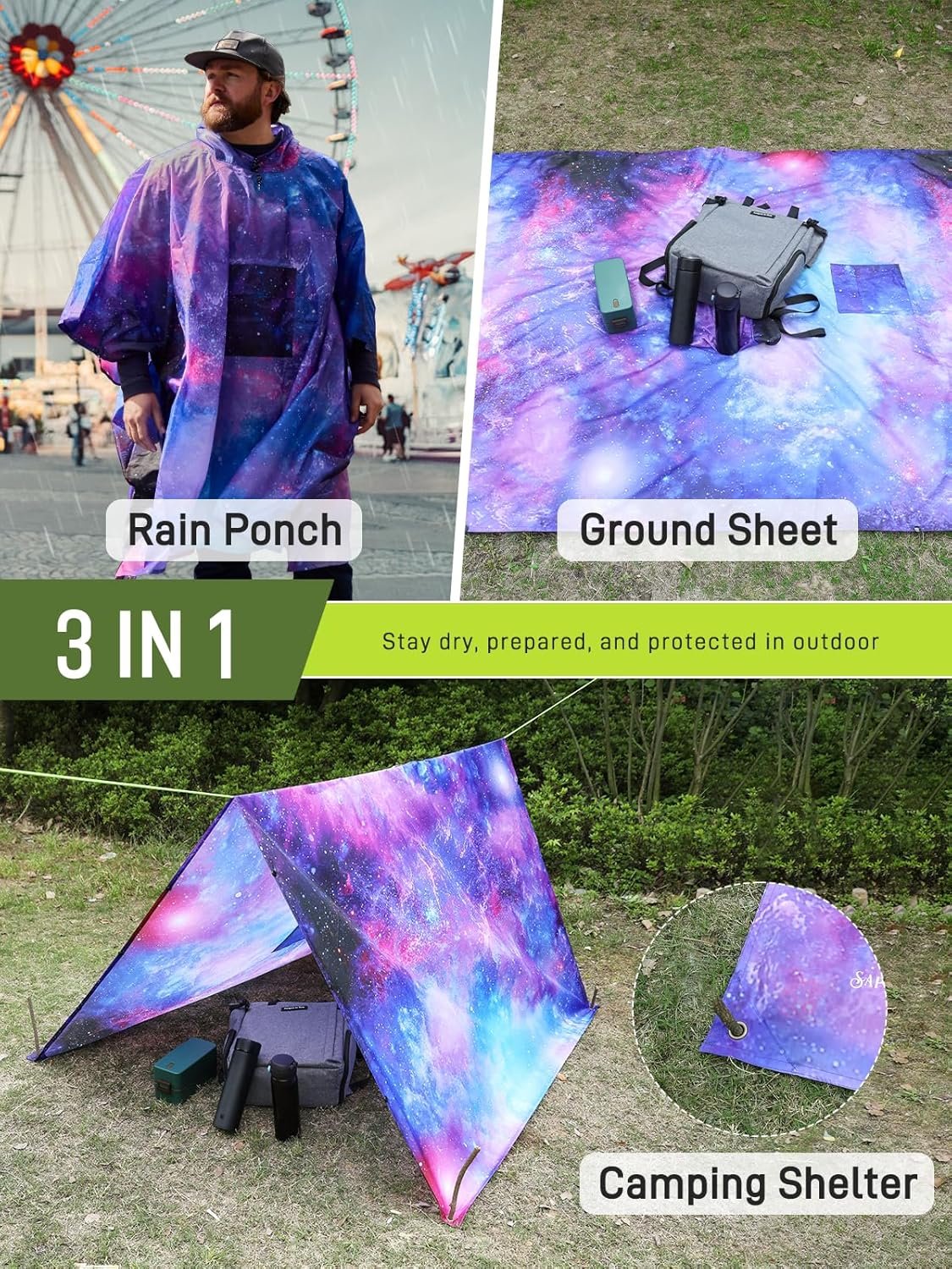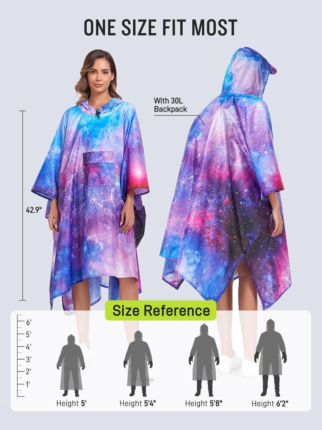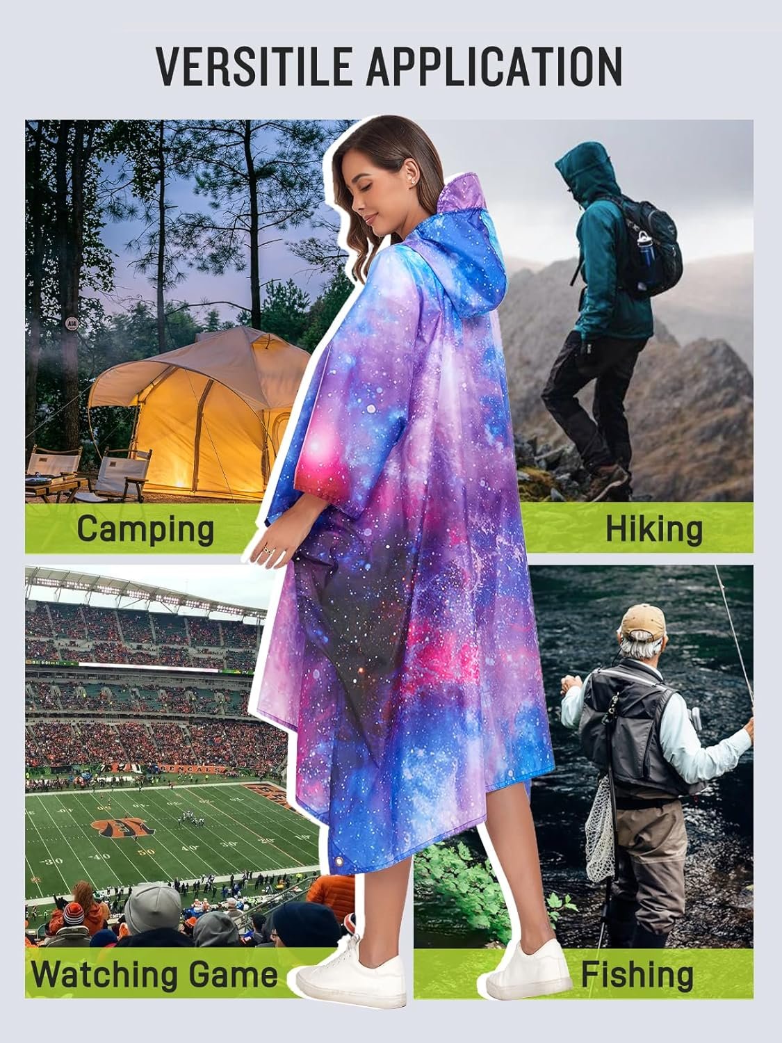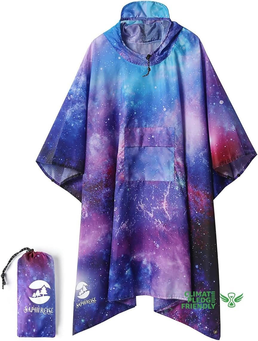 Customers find the rain poncho effective at keeping them dry during rainy weather and appreciate its compact design that rolls down tight into a small bag. The poncho receives positive feedback for its durability, with customers noting it doesn’t rip and holds up well in chilly conditions, while being spacious enough to wear a light jacket underneath. Customers praise its ease of use, particularly how easy it is to get on and off, and consider it good value for money.