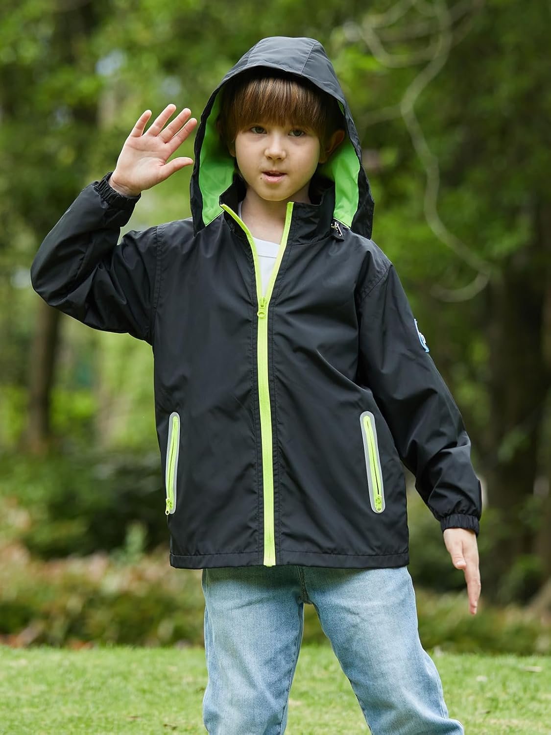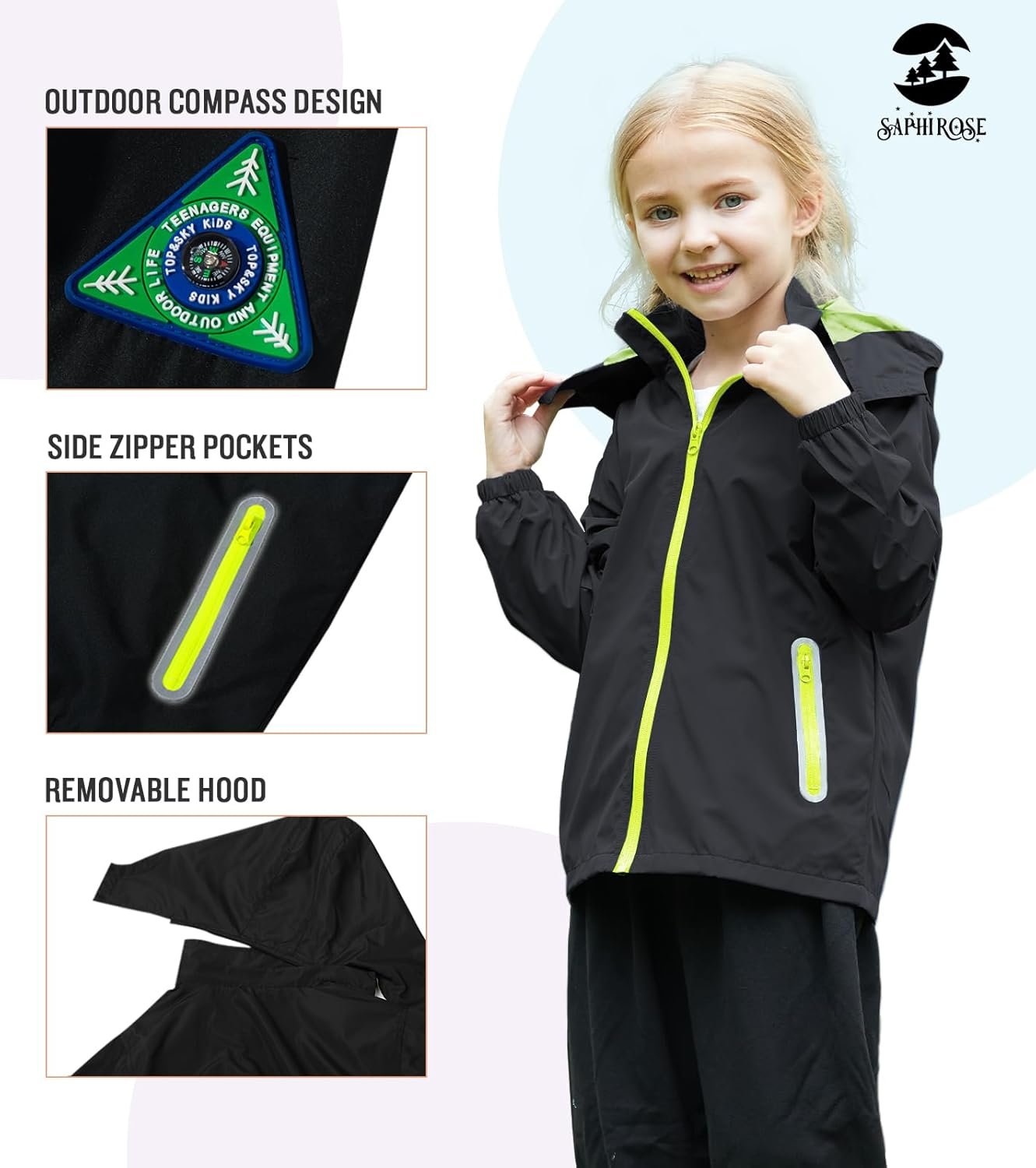 SaphiRose Kids Rain Jacket Waterproof Raincoat Mesh Lined Coat with Removable Hood for Boys Girls